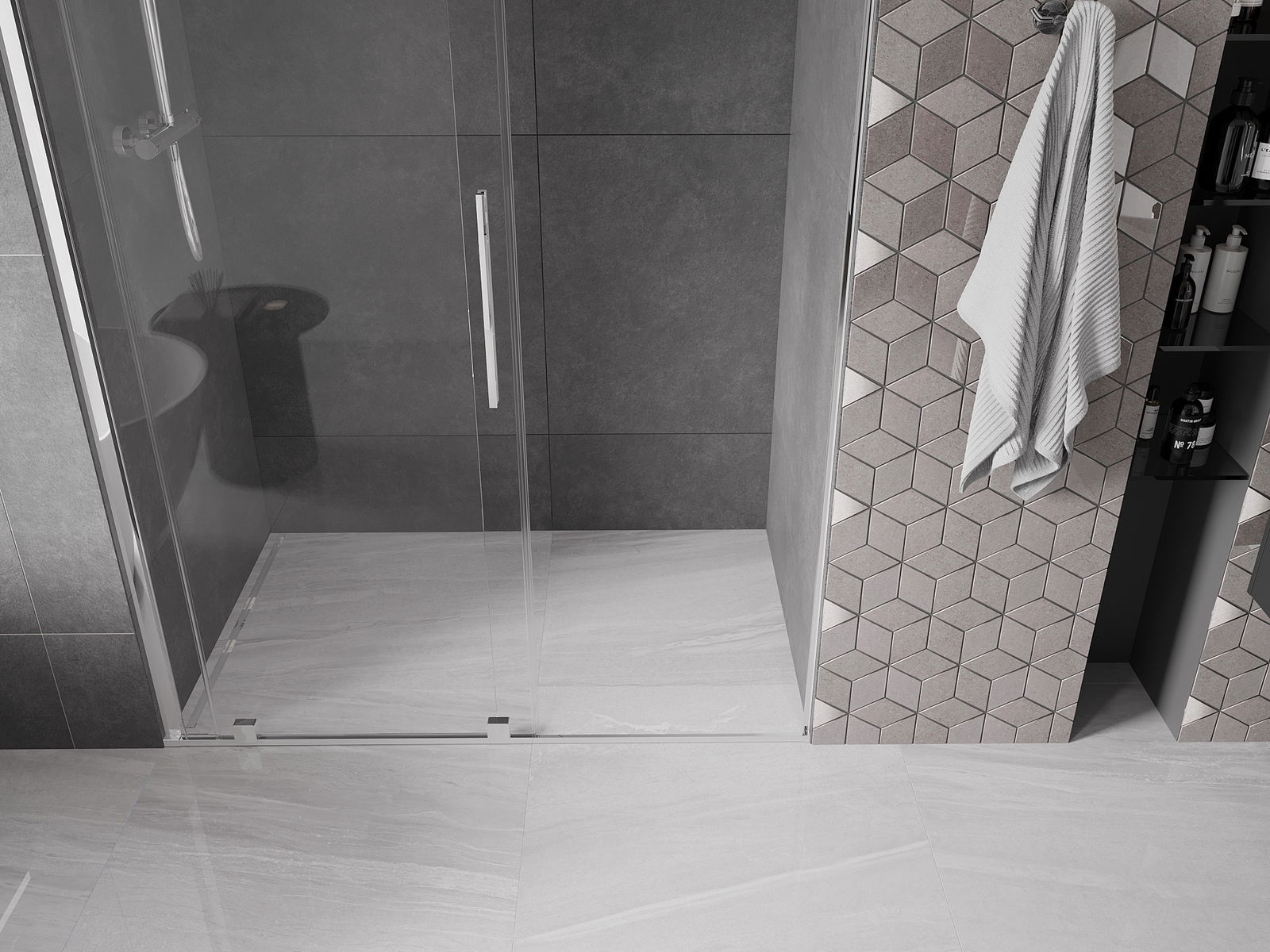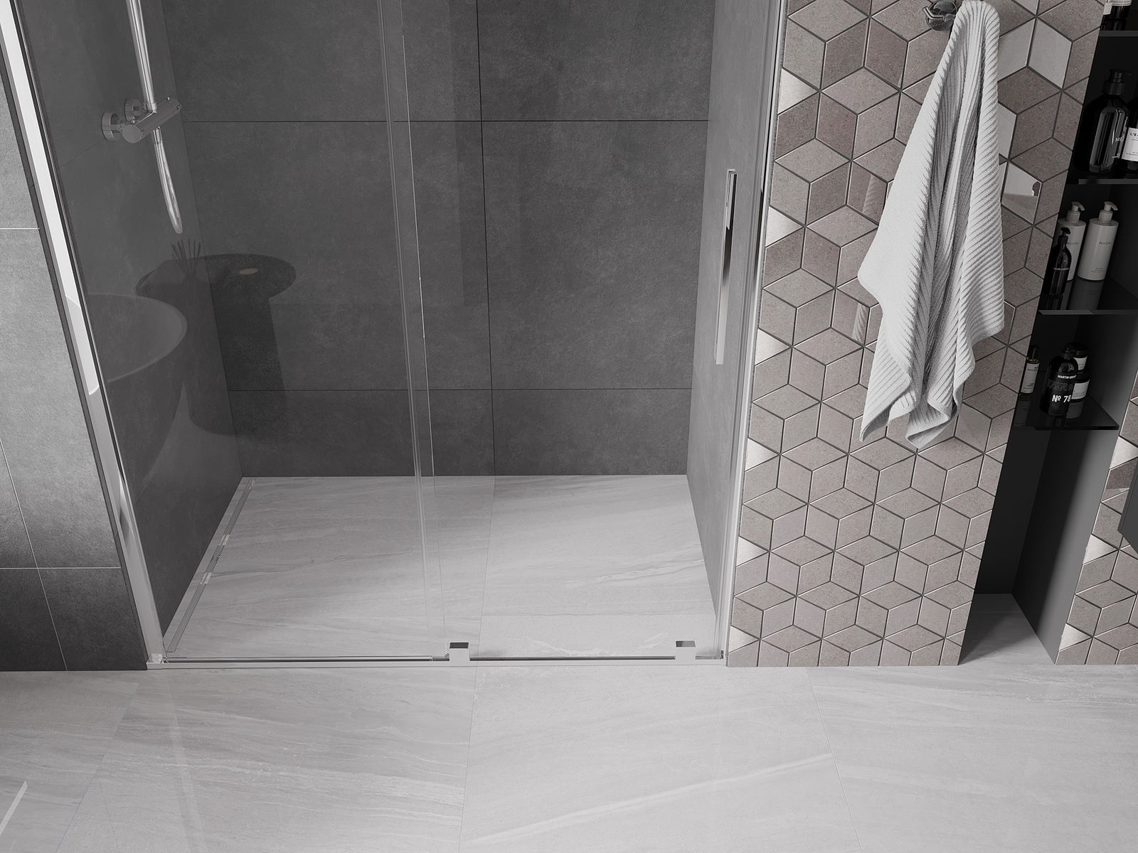 Практичната и удобна дръжка е изработена от неръждаема стомана. Модерната форма в комбинация с покритие, съчетано с цвета на профилите, придава на цялото съвременен и стилен вид, подчертавайки естетиката на всяка баня.