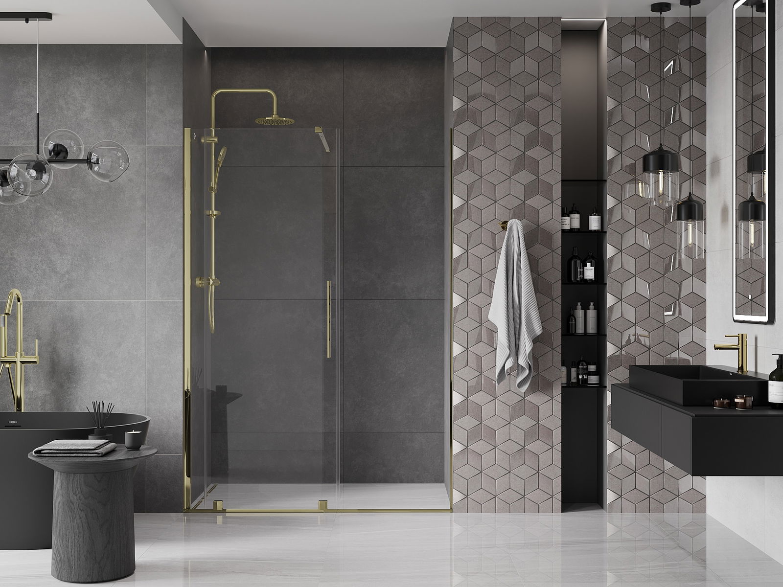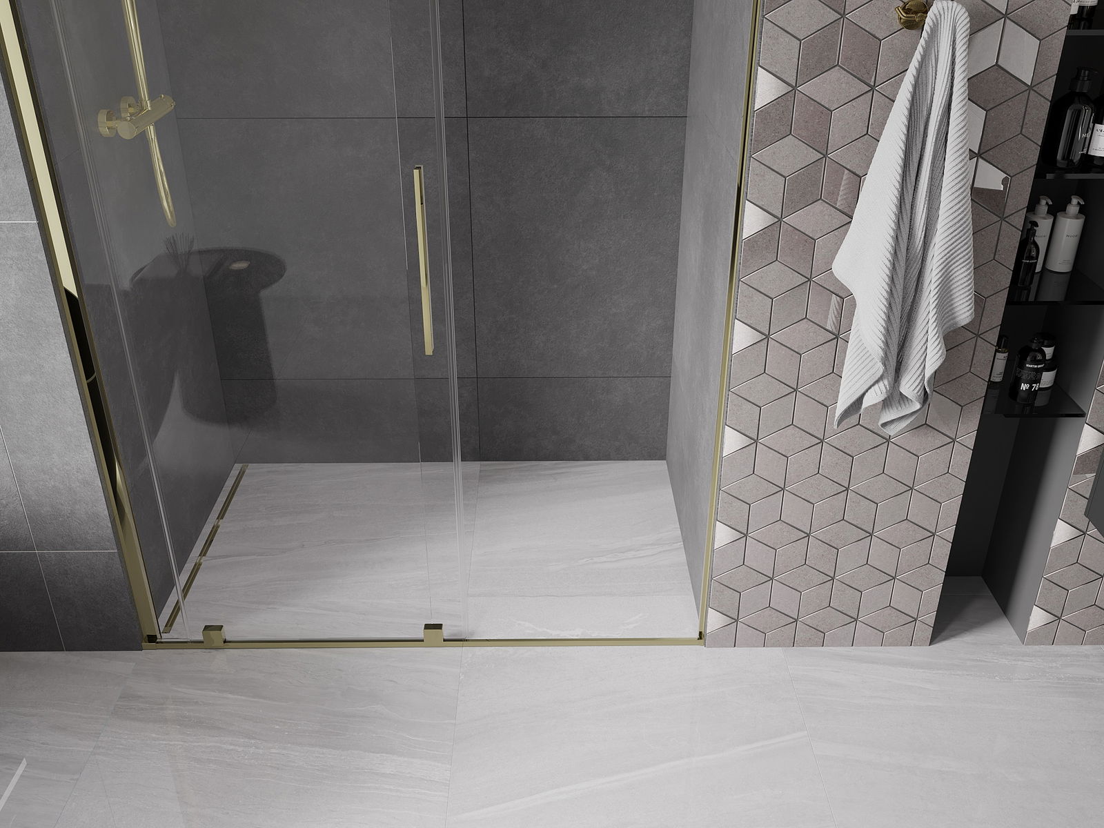 Mexen Velar плъзгаща се душ кабина 130 см, прозрачна, златиста - 871-130-000-01-50