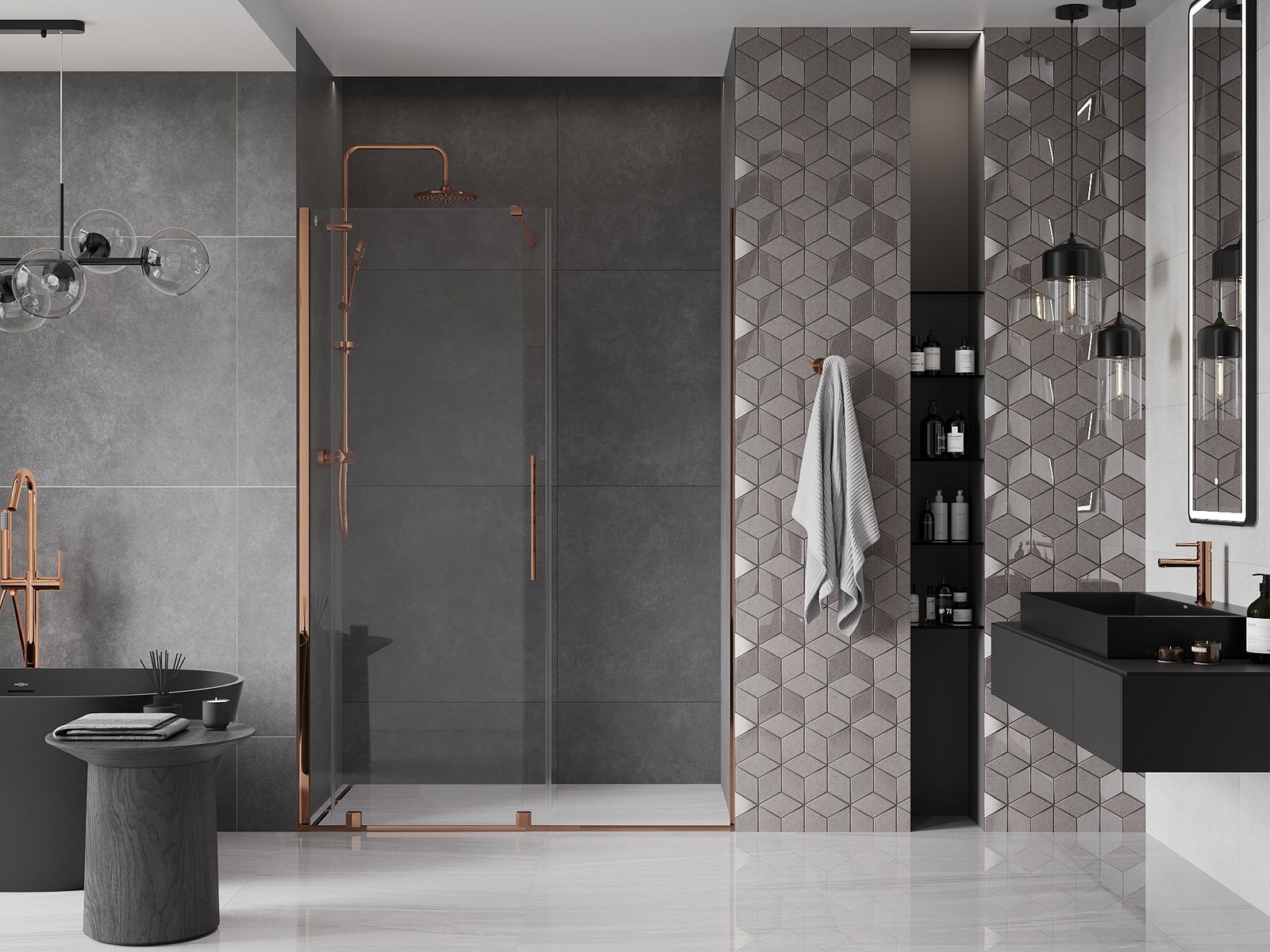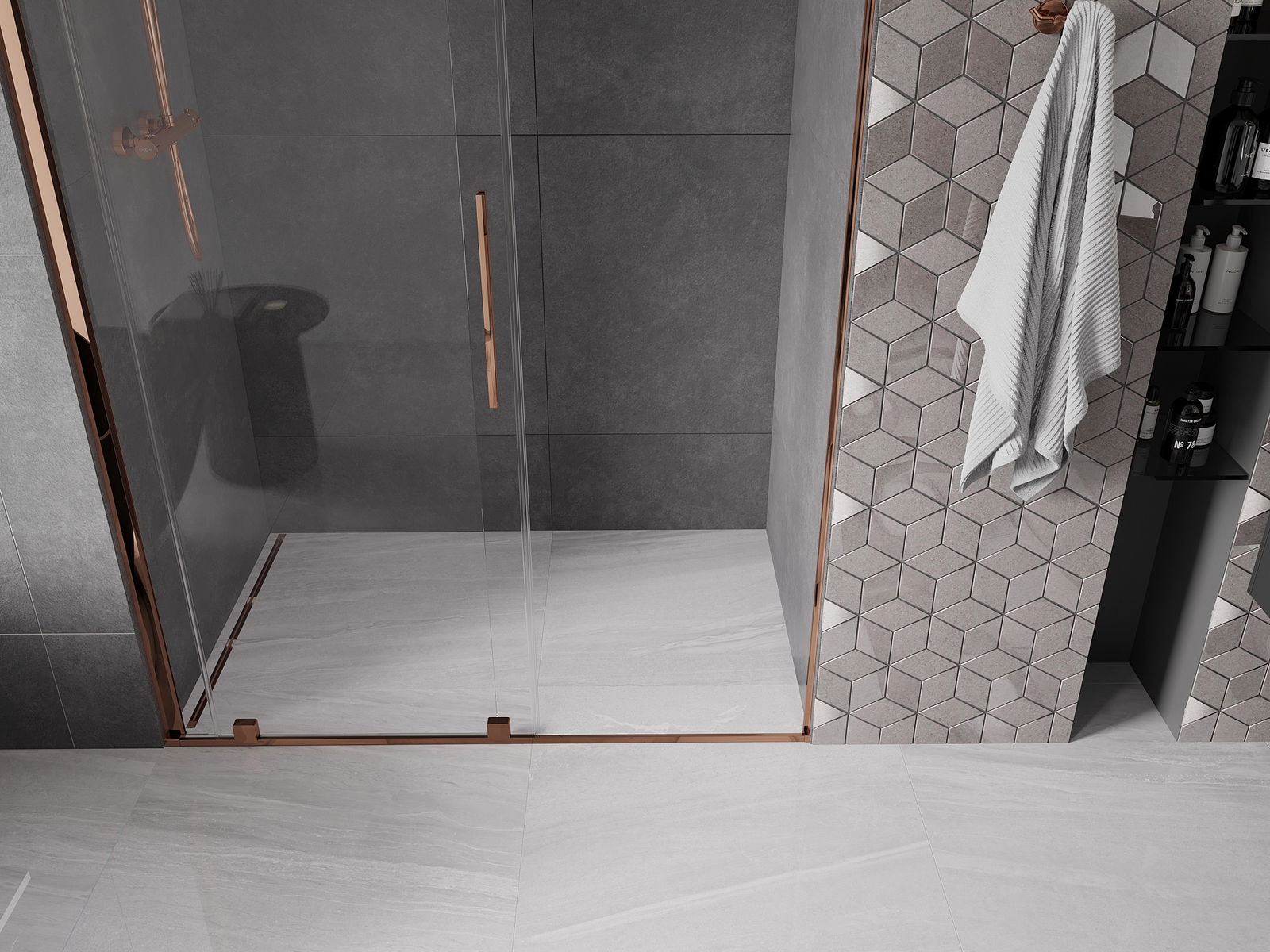 Mexen Velar плъзгащи се душ врати 160 см, прозрачни, розово злато - 871-160-000-01-60