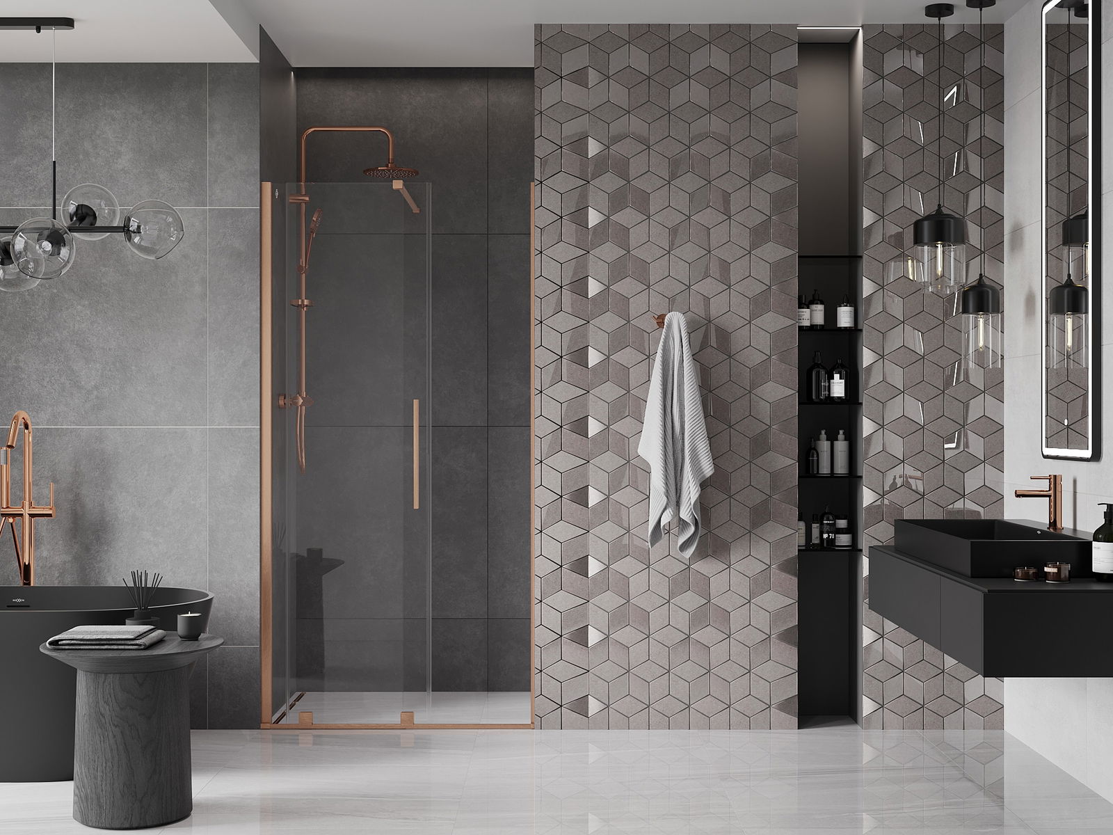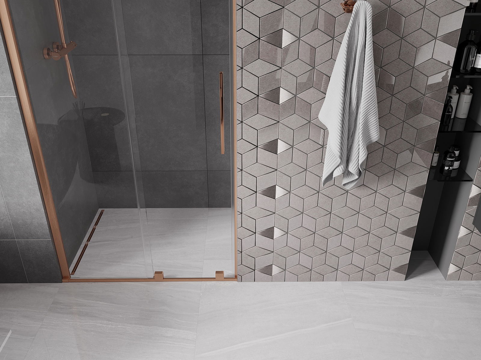 Практичната и удобна дръжка е изработена от неръждаема стомана. Модерната форма в комбинация с покритие, съчетано с цвета на профилите, придава на цялото съвременен и стилен вид, подчертавайки естетиката на всяка баня.