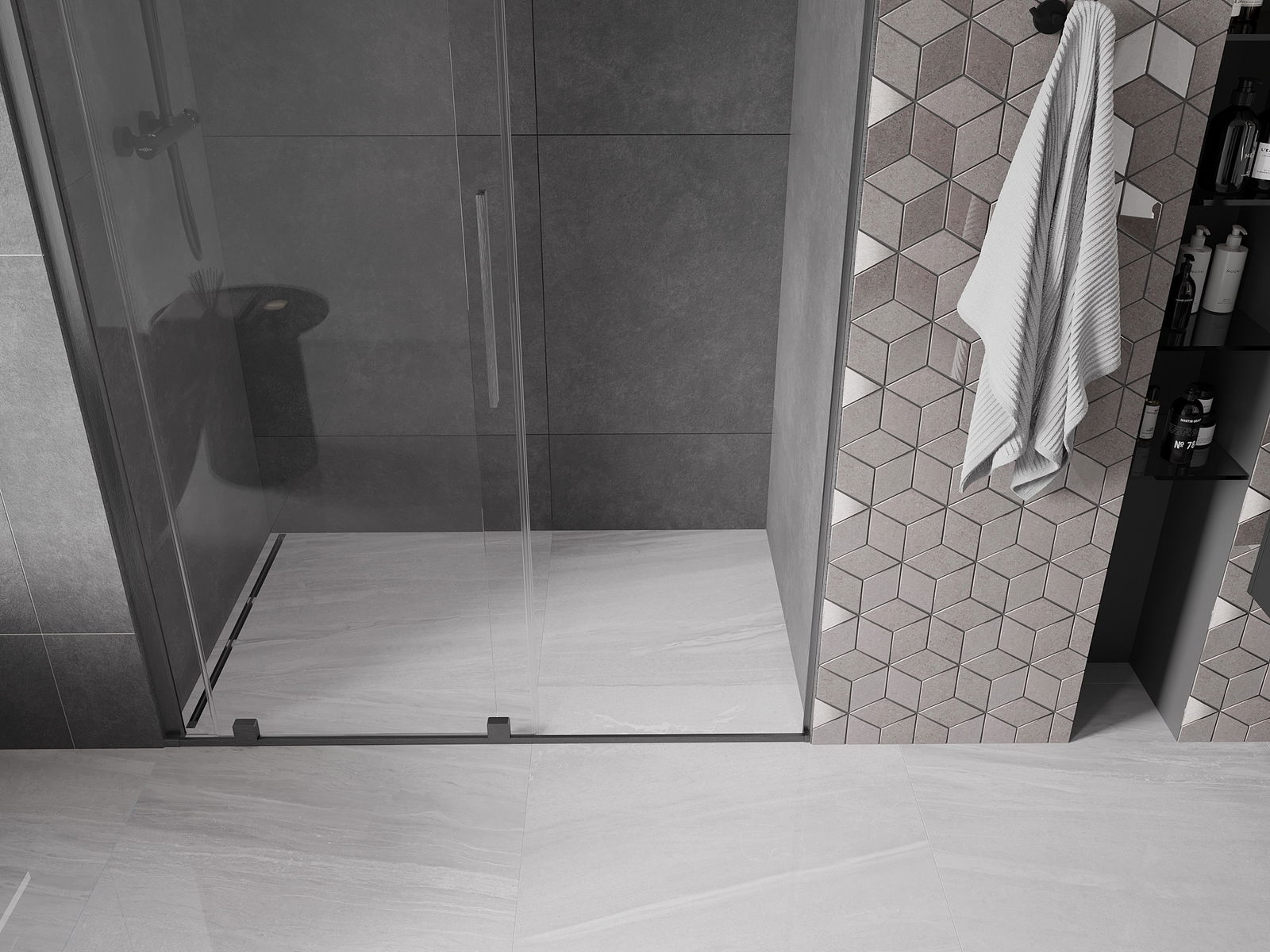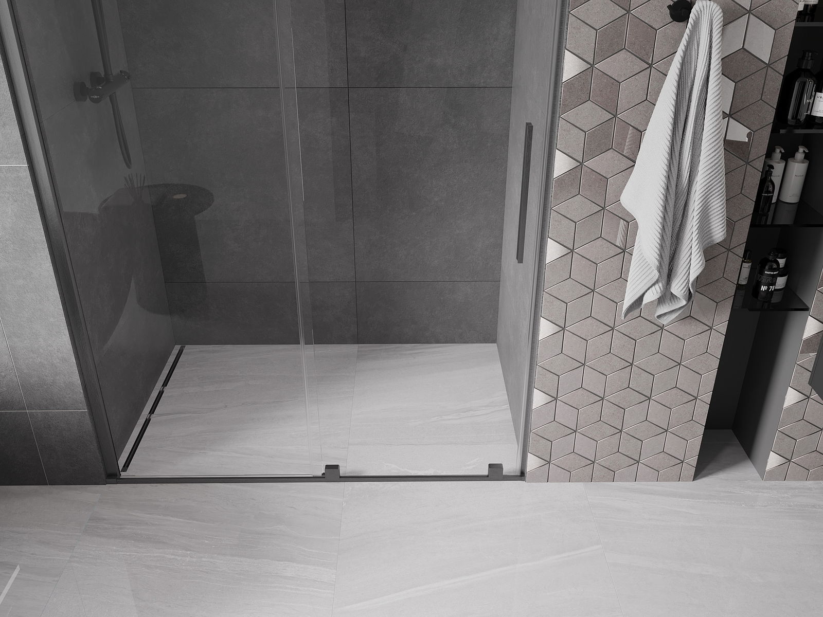 Mexen Velar плъзгаща се душ кабина 140 см, прозрачна, gun gray четка - 871-140-000-01-66
