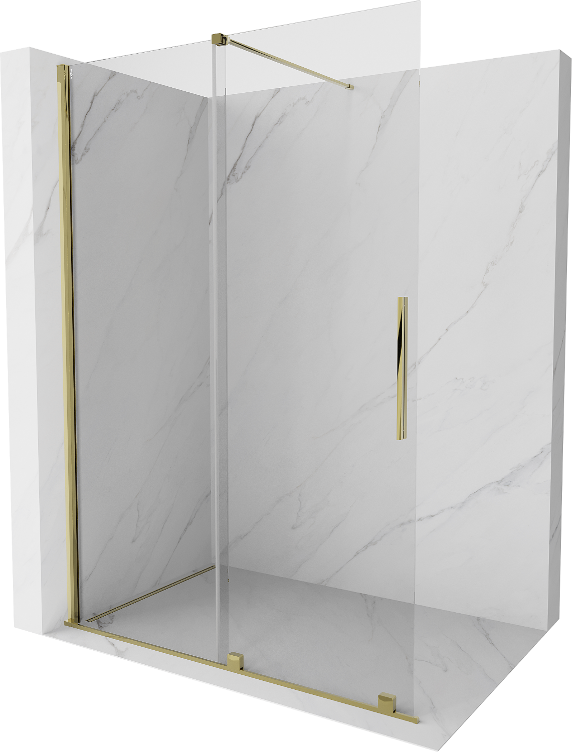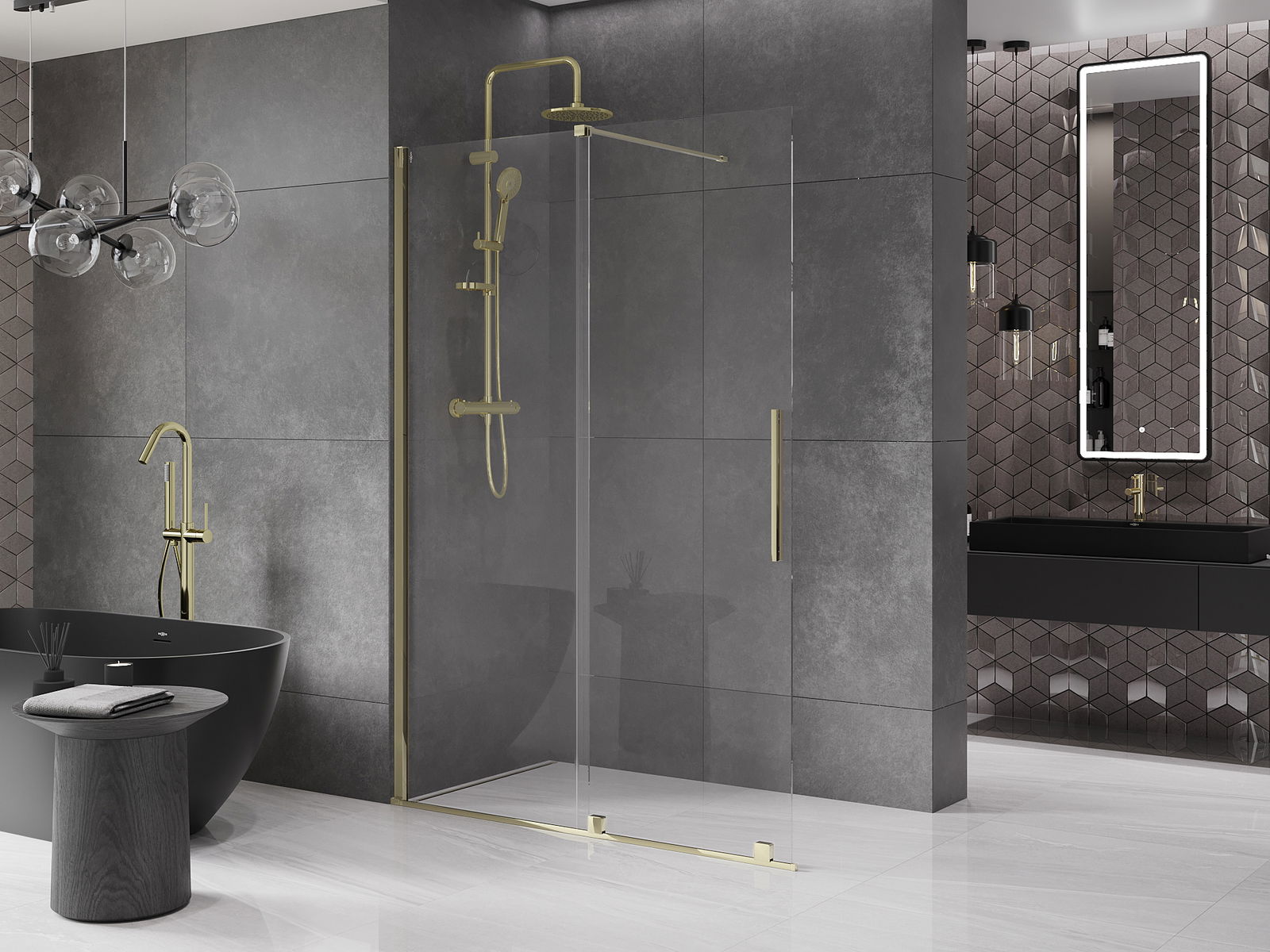 Mexen Velar плъзгаща се душ стена Walk-in 150 x 200 cm, прозрачна 8 mm, златна - 871-150-000-03-50