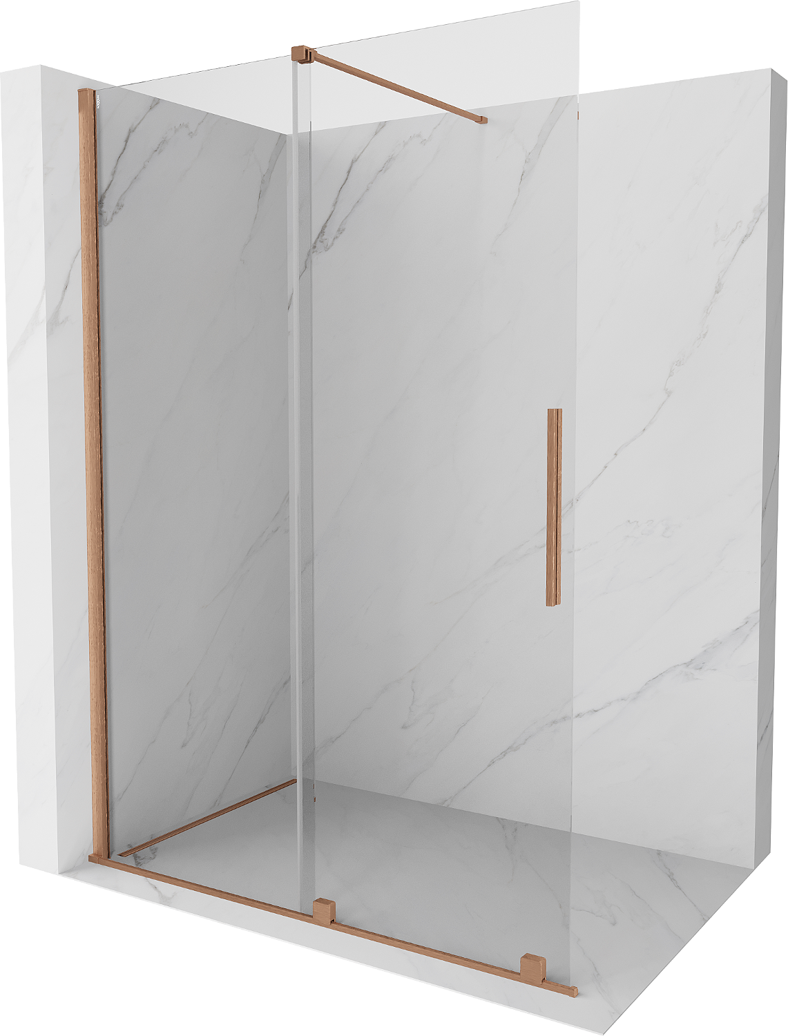 Mexen Velar плъзгаща се душ кабина Walk-in 140 x 200 cm, прозрачна 8 mm, четкан мед - 871-140-000-03-65