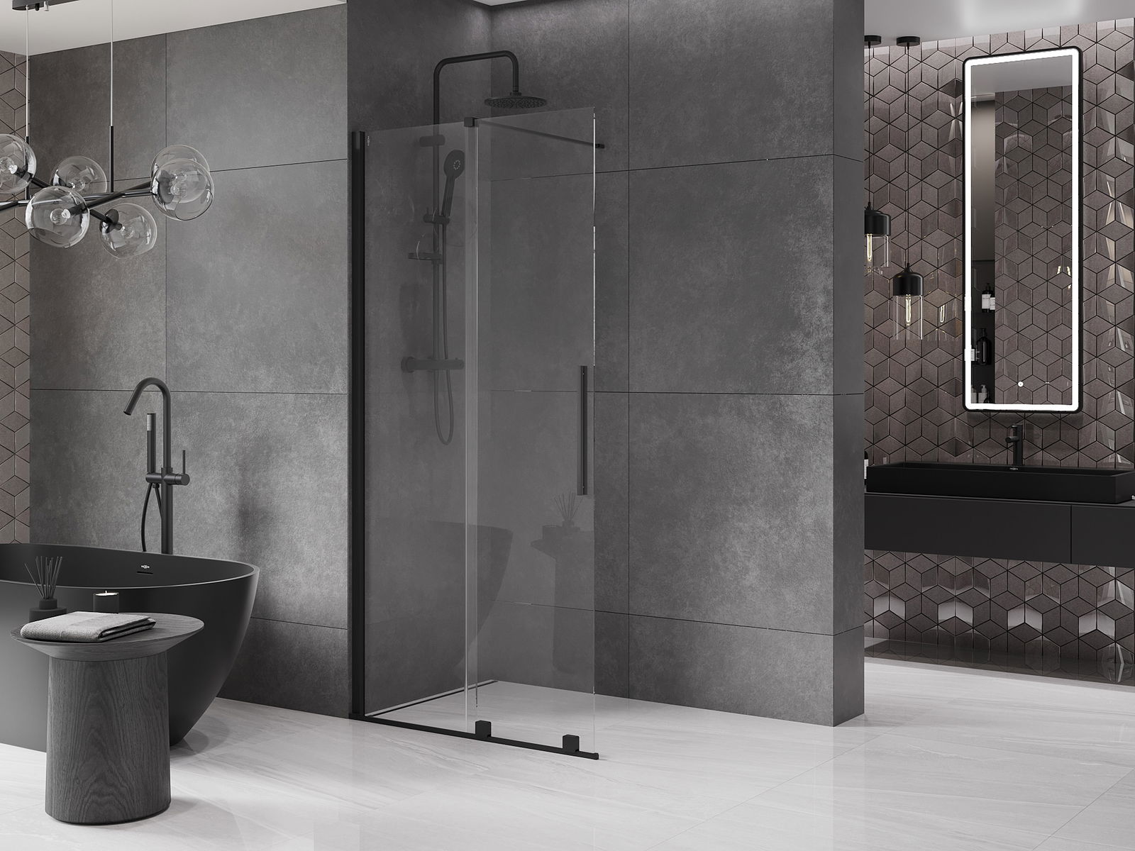 Mexen Velar плъзгаща се преграда за душ Walk-in 85 x 200 см, прозрачна 8 мм, черна - 871-085-000-03-70