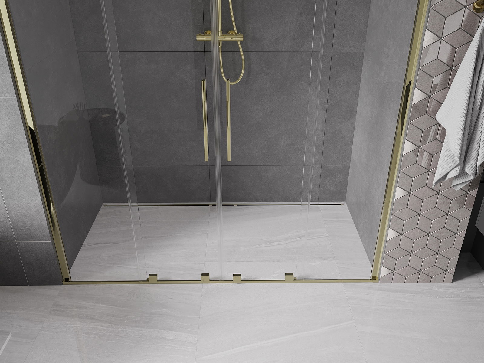 Mexen Velar Duo плъзгащи се душ врати 180 см, прозрачни, златисти - 871-180-000-02-50
