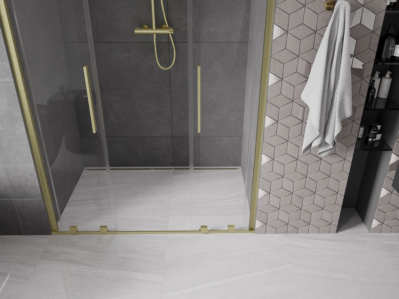 Mexen Velar Duo плъзгащи се душ врати 160 см, прозрачни, златисто четкани - 871-160-000-02-55