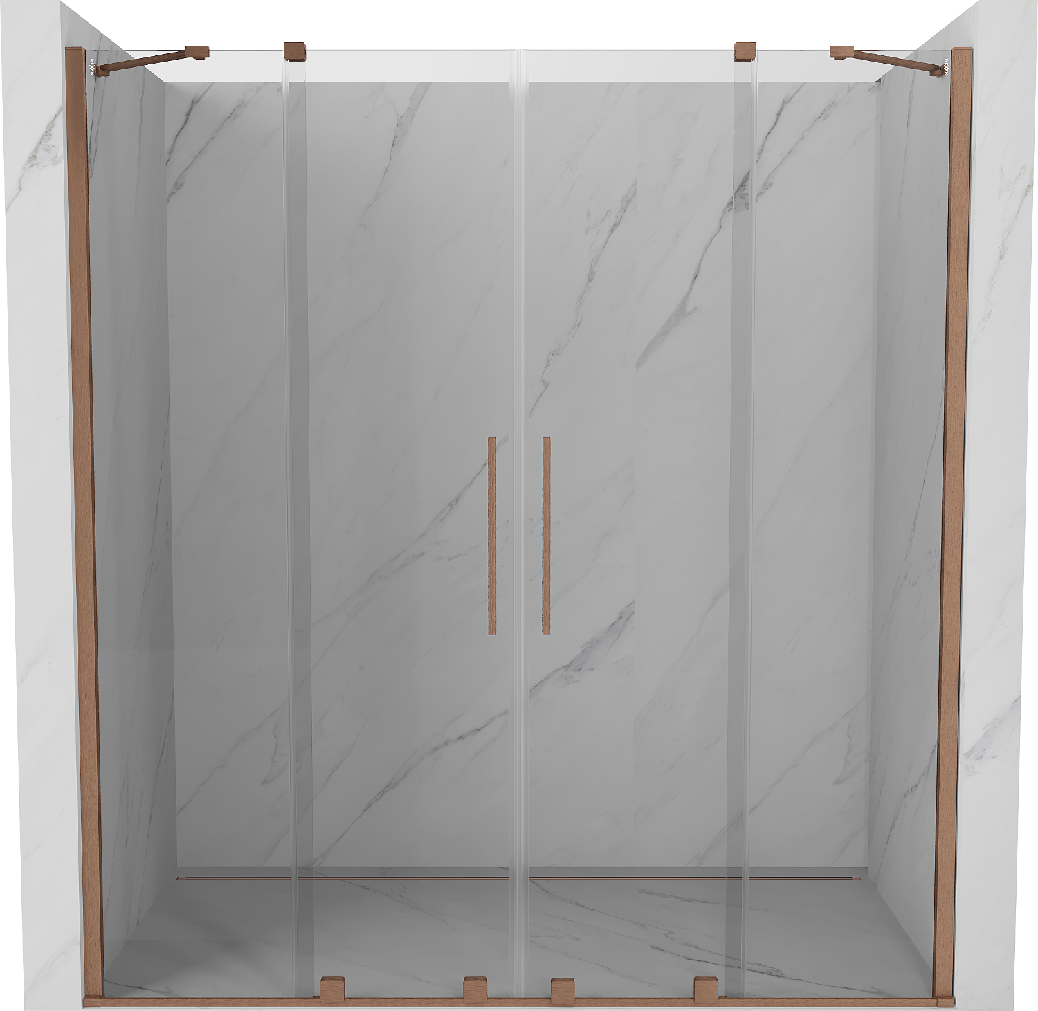 Mexen Velar Duo плъзгащи се душ врати 200 см, прозрачни, четкана мед - 871-200-000-02-65