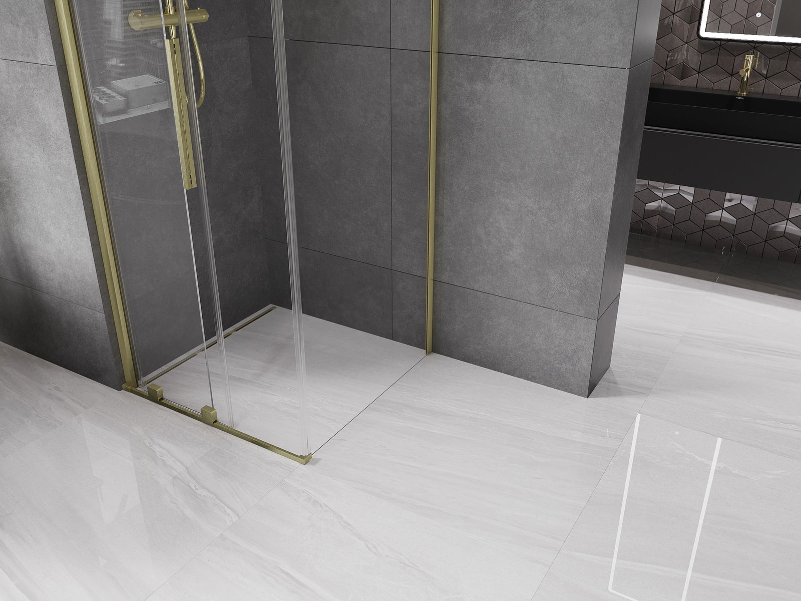 Mexen Velar плъзгаща се душ кабина 100 x 100 см, прозрачна, златиста с четка - 871-100-100-01-55