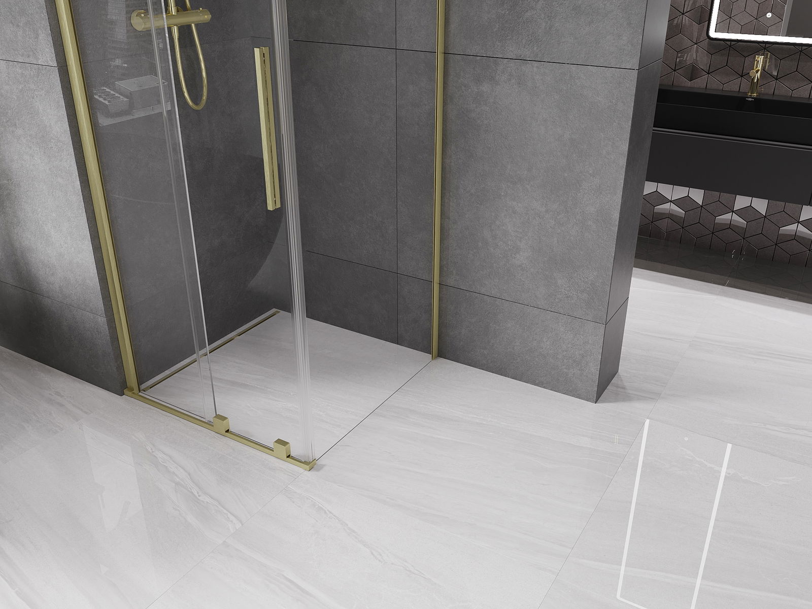 Практичната и удобна дръжка е изработена от неръждаема стомана. Модерната форма в комбинация с покритие, съчетано с цвета на профилите, придава на цялото съвременен и стилен вид, подчертавайки естетиката на всяка баня.