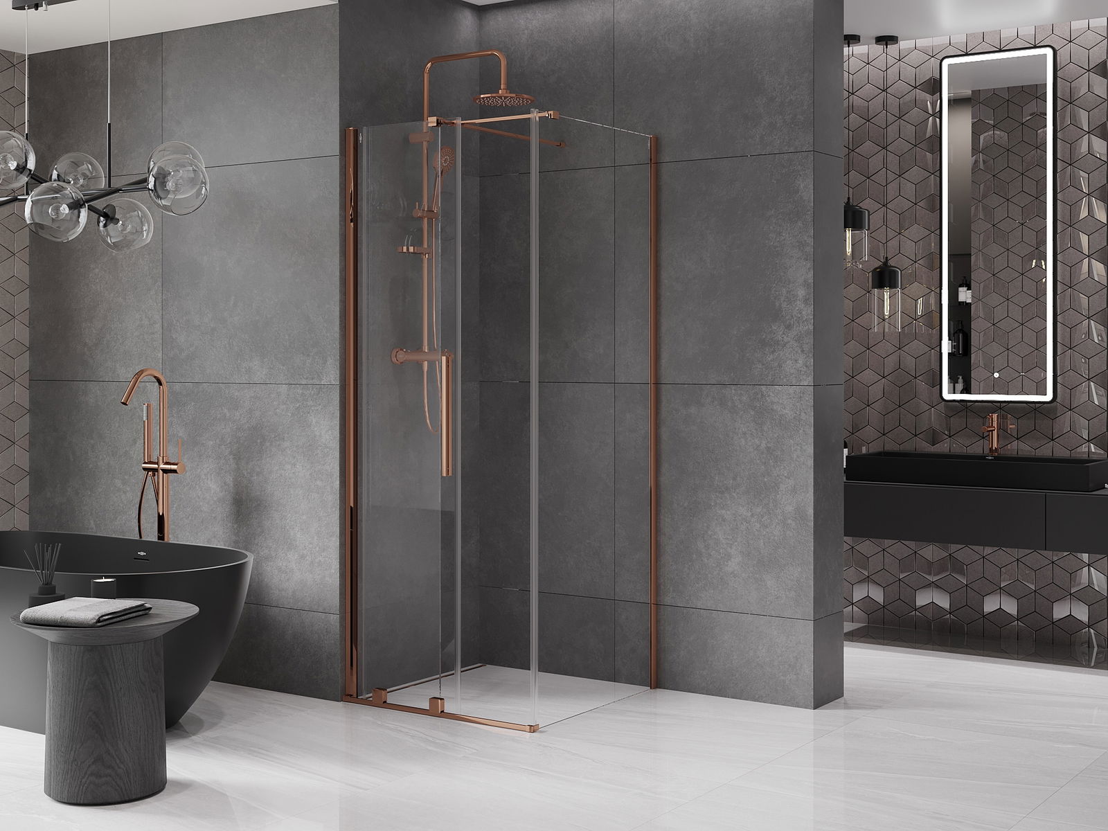 Mexen Velar плъзгаща се душ кабина 100 x 100 см, прозрачна, розово злато