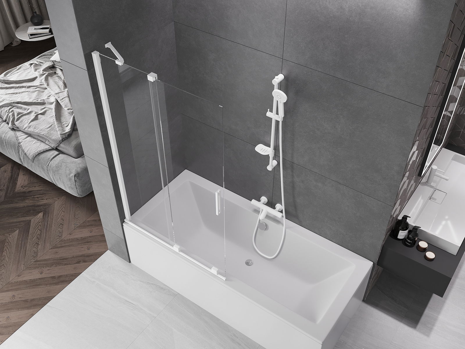 Mexen Velar параван за вана 2-крилен плъзгащ се 100 x 150 см, прозрачен, бял - 896-100-000-01-20