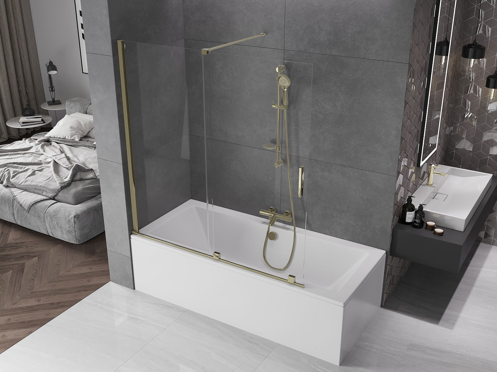 Mexen Velar параван за вана с 2 крила, плъзгащ се 150 x 150 см, прозрачен, златен - 896-150-000-01-50
