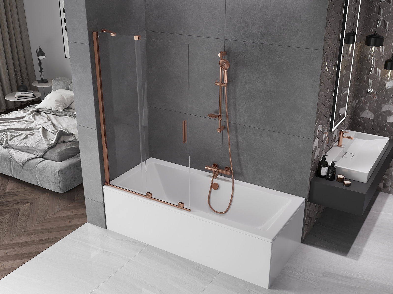 Мексен Велар параван за вана, 2-крилен плъзгащ, 100 x 150 см, прозрачен, розово злато - 896-100-000-01-60