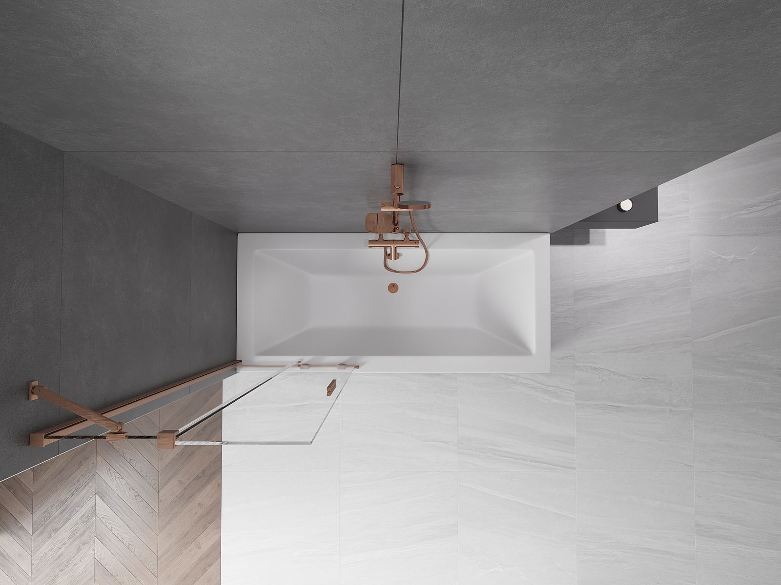 Mexen Velar двусекционен подвижен параван за вана 75 x 150 cm, прозрачен, четкана мед - 896-075-000-01-65