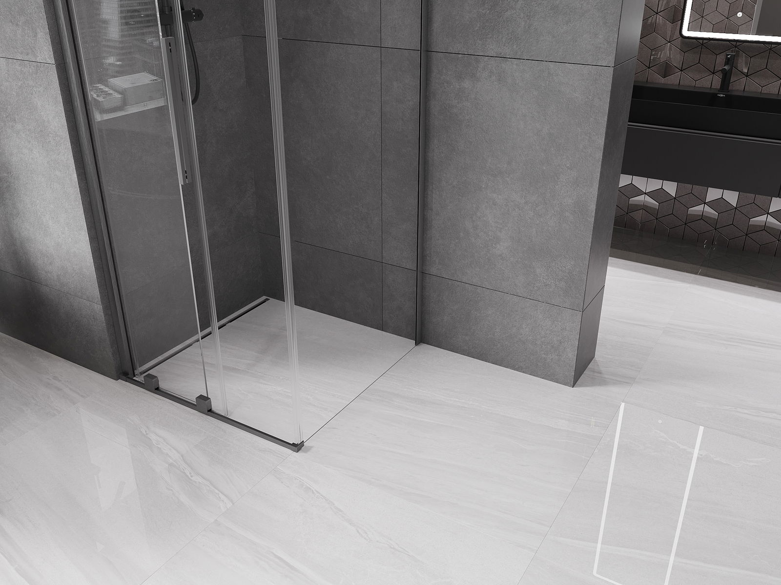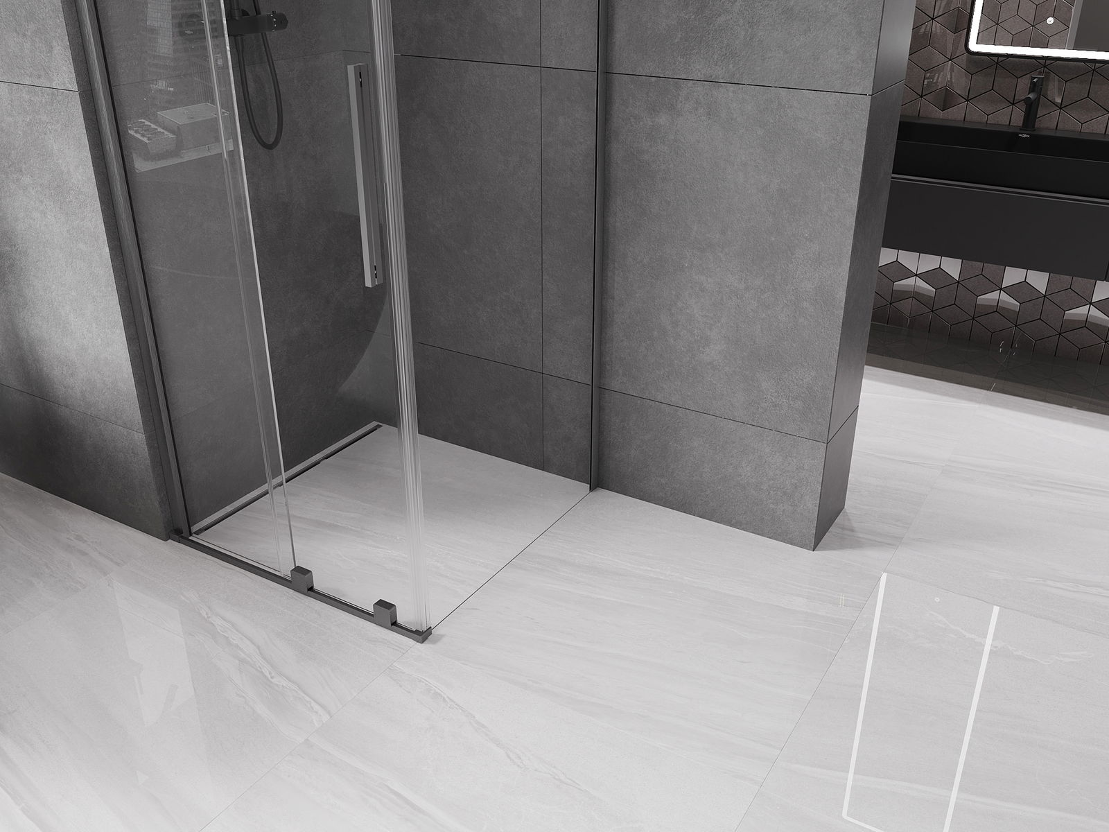 Прагът на запечатване осигурява ефективна защита срещу отток на водата извън душа, предпазвайки банята от наводнение. Благодарение на алуминия, прагът на уплътняване е устойчив на корозия и механично увреждане.