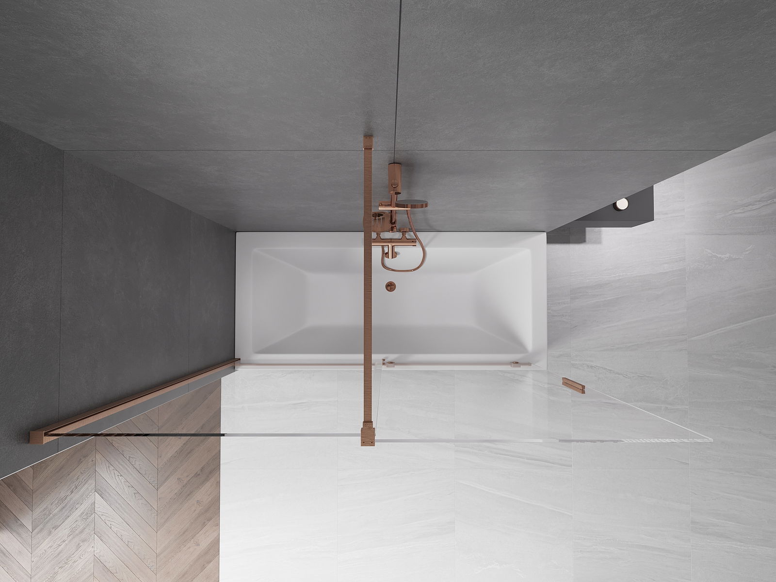 Mexen Velar душ параван с 2-разпределящи се крила 170 x 150 см, прозрачна, матирана мед - 896-170-000-01-65