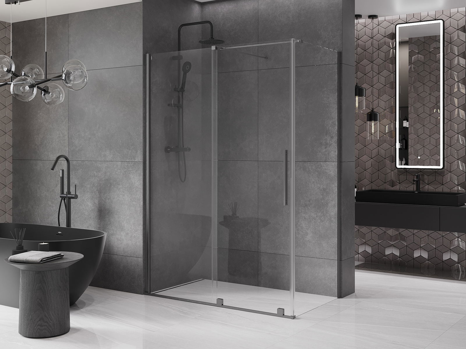 Mexen Velar плъзгаща се душ кабина 160 x 85 см, прозрачна, четкано сиво пистолетно - 871-160-085-01-66