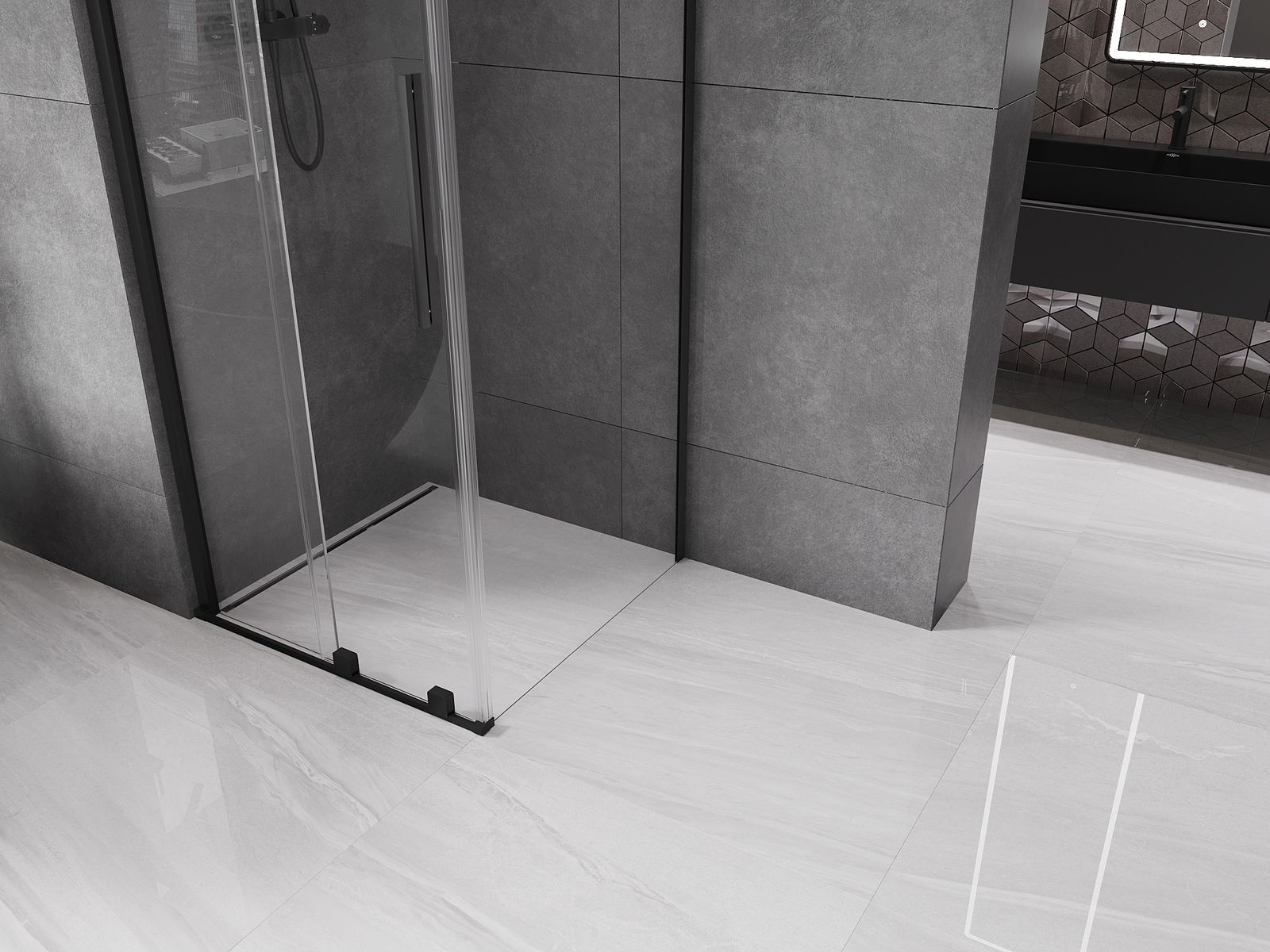 Прагът на запечатване осигурява ефективна защита срещу отток на водата извън душа, предпазвайки банята от наводнение. Благодарение на алуминия, прагът на уплътняване е устойчив на корозия и механично увреждане.