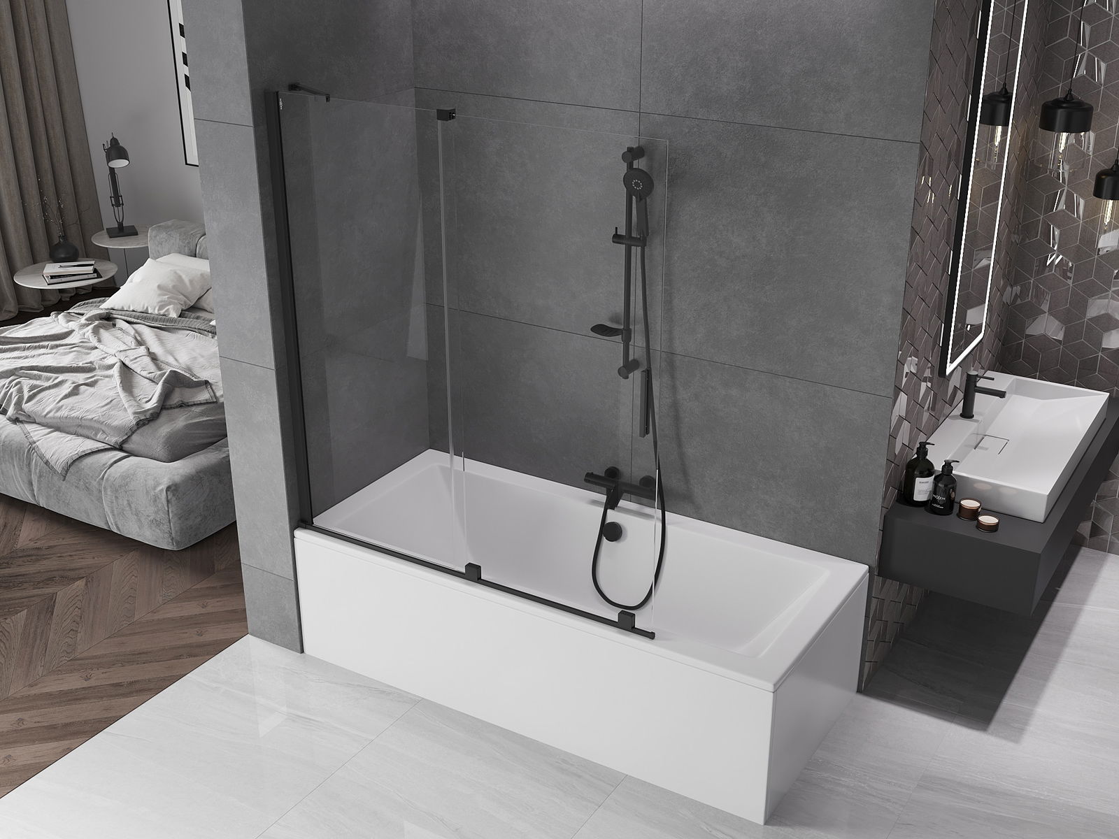 Mexen Velar параван за вана с 2 плъзгащи се крила 140 x 150 см, прозрачен, черен - 896-140-000-01-70