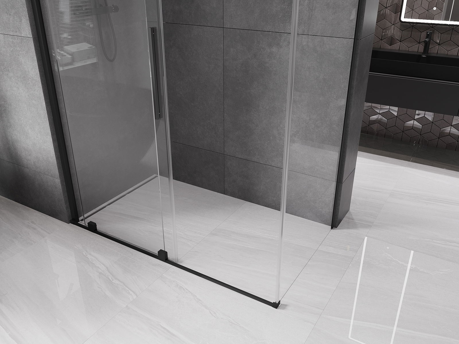 Mexen Velar плъзгаща се душ кабина 150 x 75 см, прозрачна, черна - 871-150-075-01-70