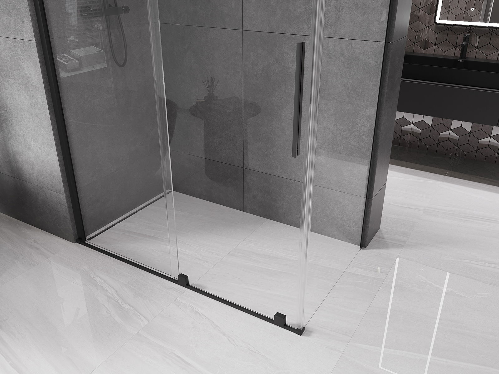 Благодарение на използването на универсалната система за монтаж, душовите врати могат да бъдат монтирани отдясно или отляво, в зависимост от нуждите. Благодарение на това можете лесно да проектирате душ, който е напаснат към пространството в банята.