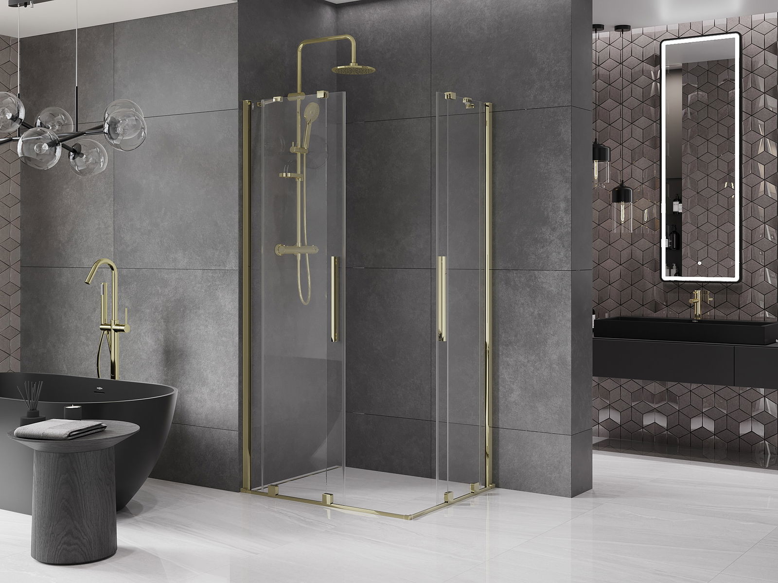 Mexen Velar Duo дуо душ кабина плъзгаща се 90 x 80 см, прозрачна, златна - 871-090-080-02-50