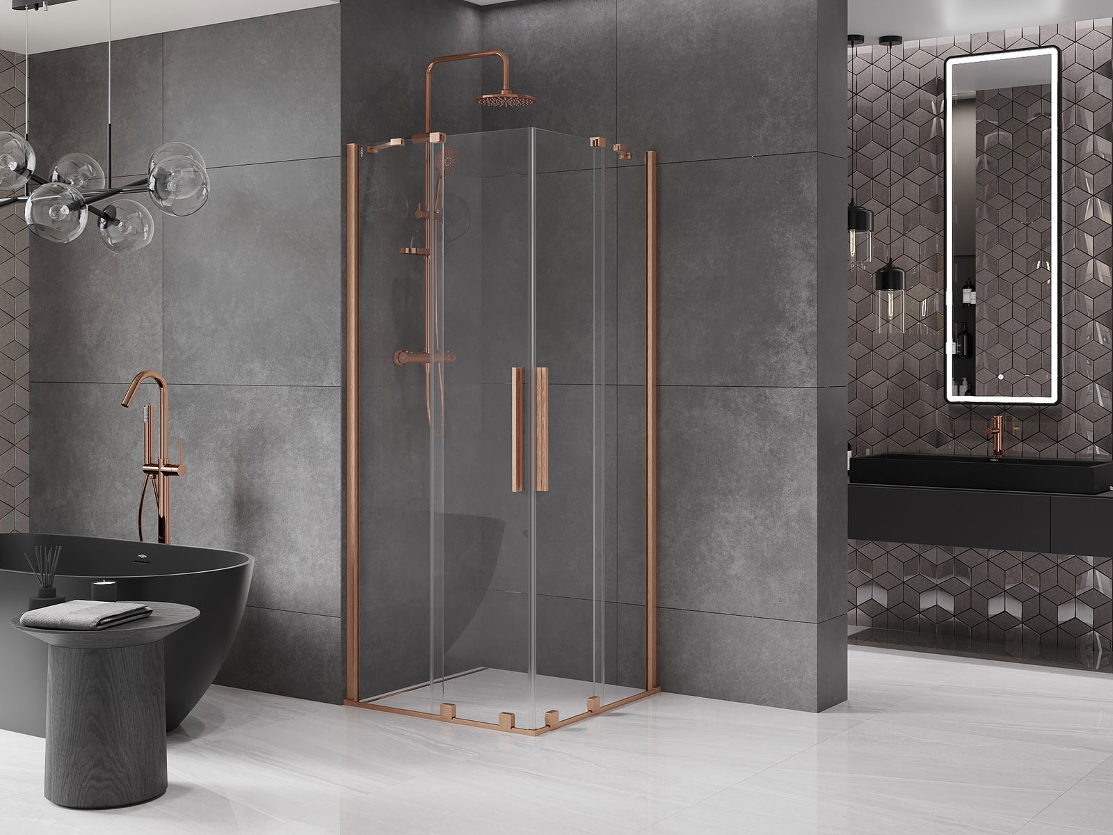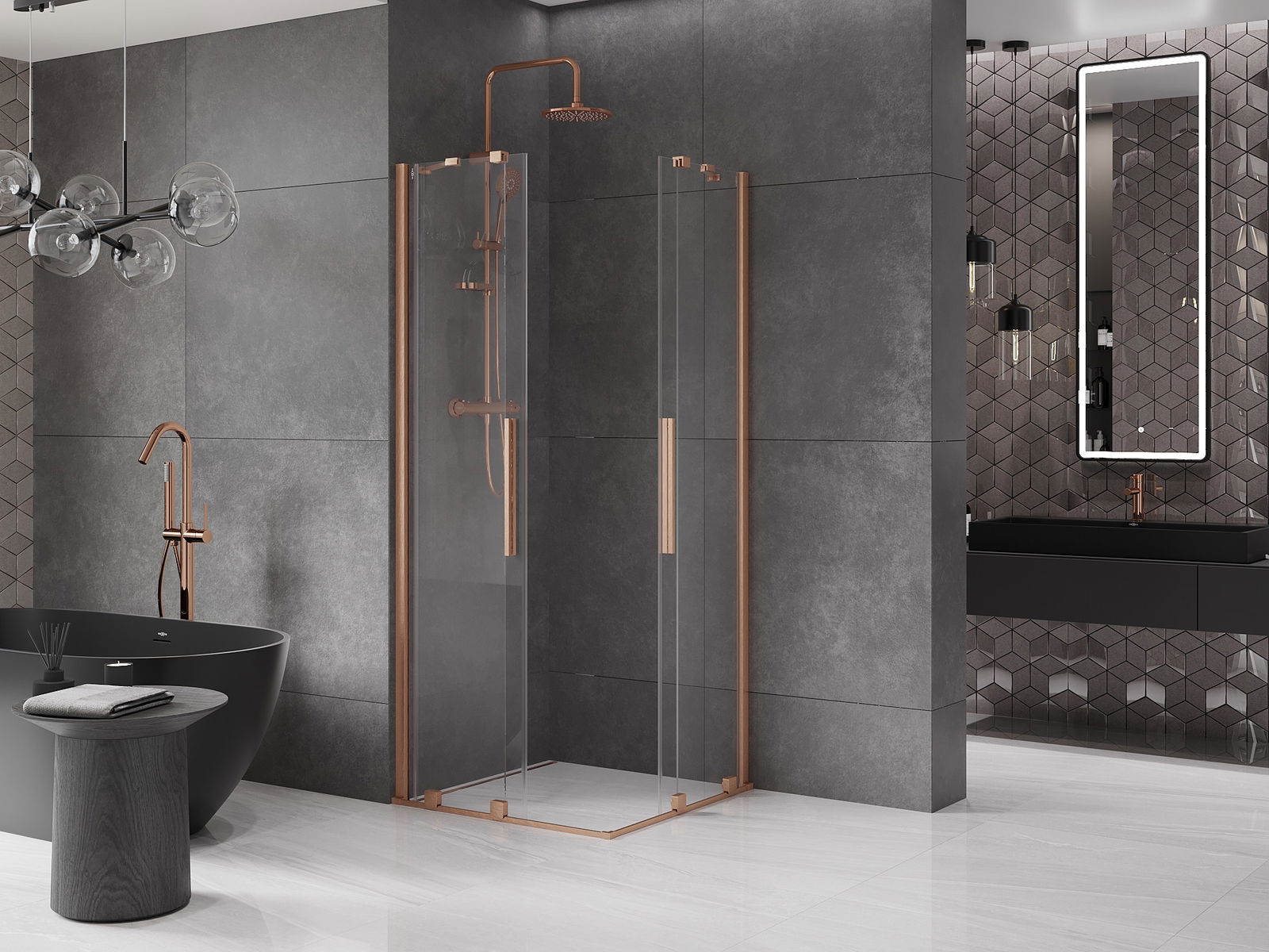 Mexen Velar Duo плъзгаща се душ кабина 80 x 80 см, прозрачна, четкана мед - 871-080-080-02-65