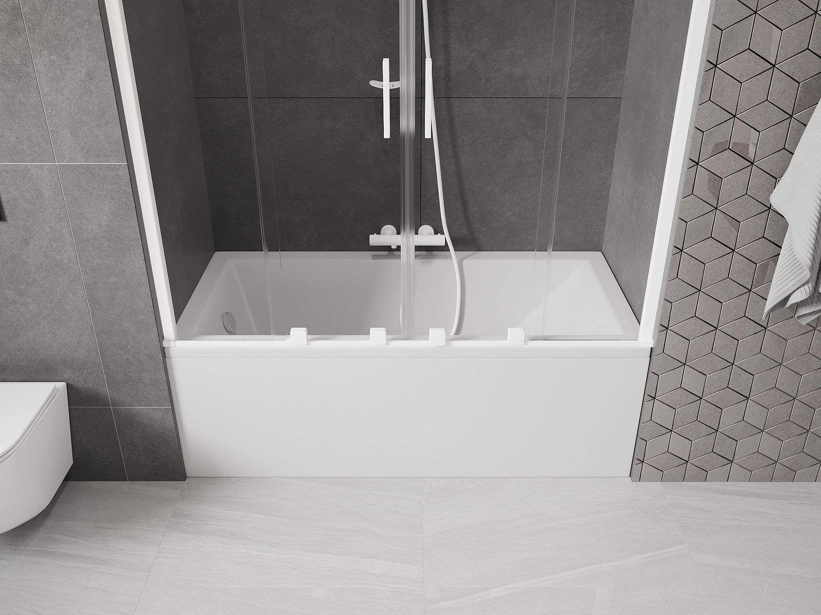 Ефективна защита срещу разливане на вода по време на къпане. Екранът има уплътнения, които перфектно се адаптират към чашата на стъклото и ръба на ваната. Функционално решение, гарантиращо безопасността и лесната поддръжка.