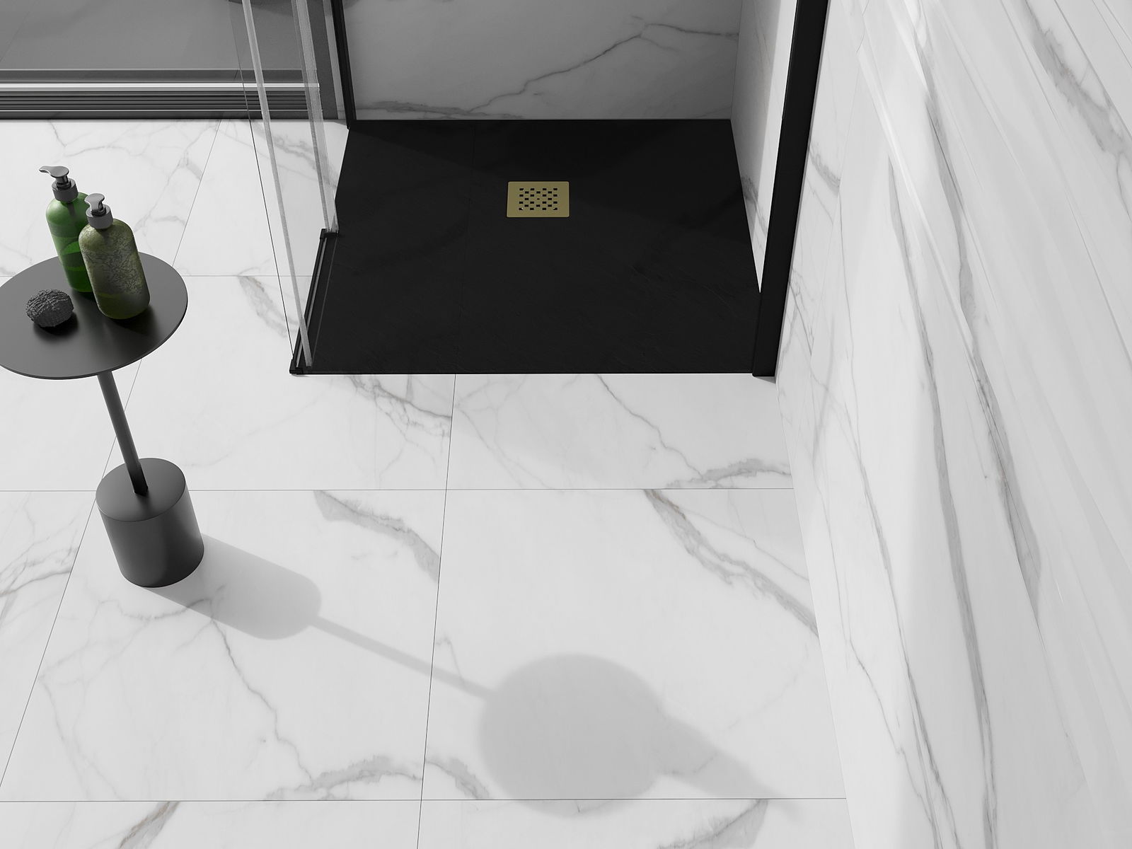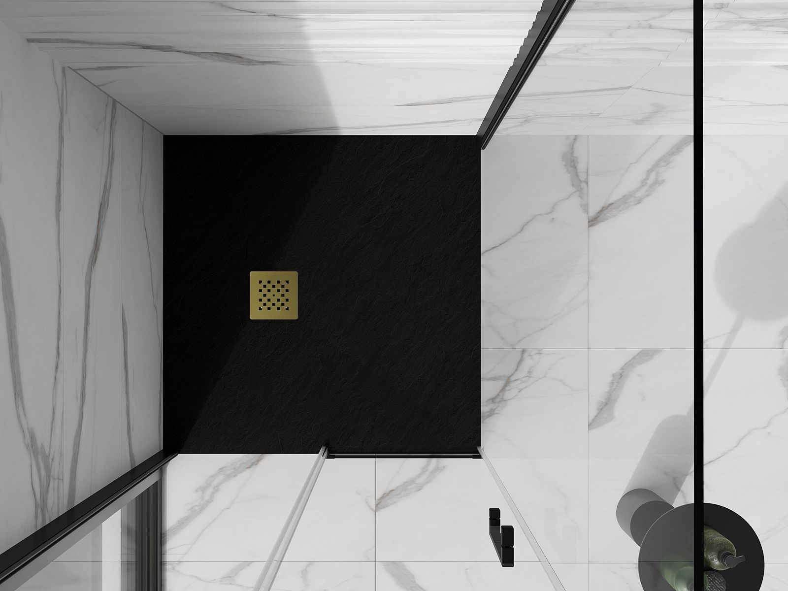 Mexen Stone+ композитен квадратен душ под 90 x 90 см, черен, златен капак