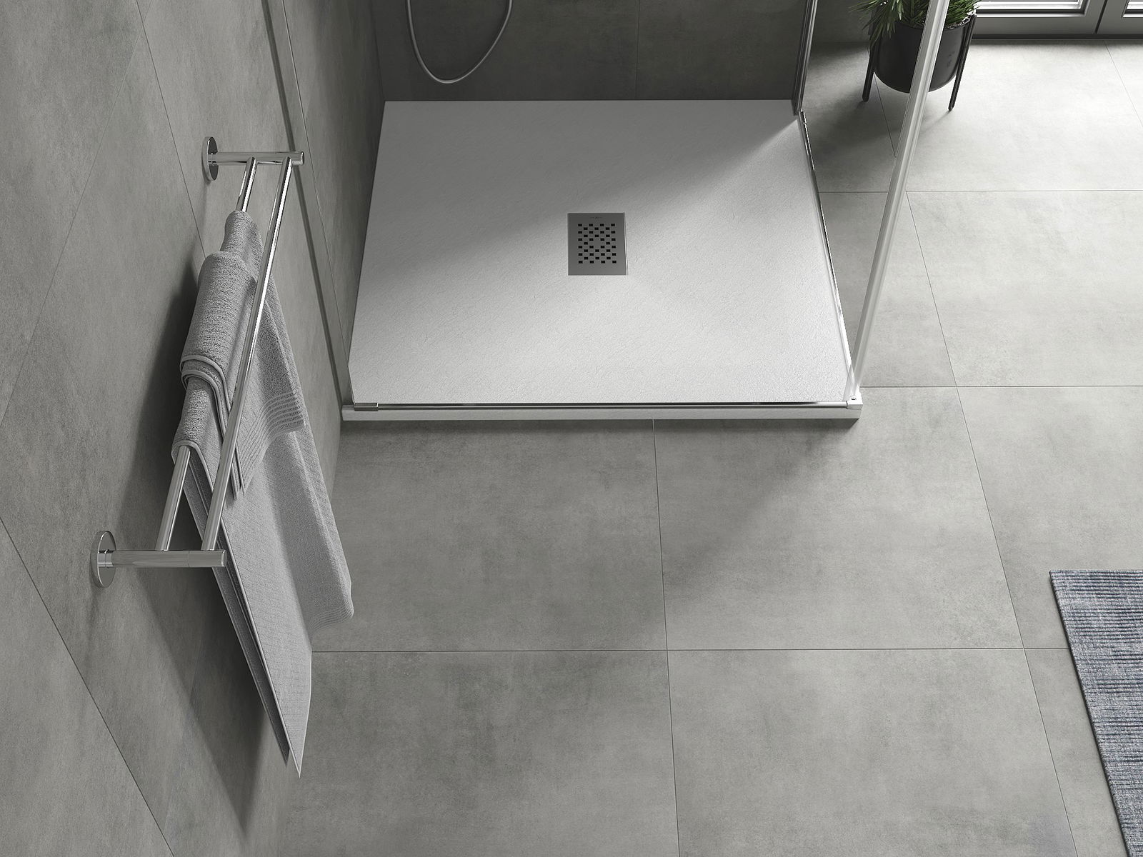 Повърхността на таблата за душ наподобява камък със структурата му. Това е уникална комбинация от естествен външен вид с модерна интериорна подредба. Той добавя характер, подчертава естетиката и елегантността на декора на банята и впечатлява с формата си.