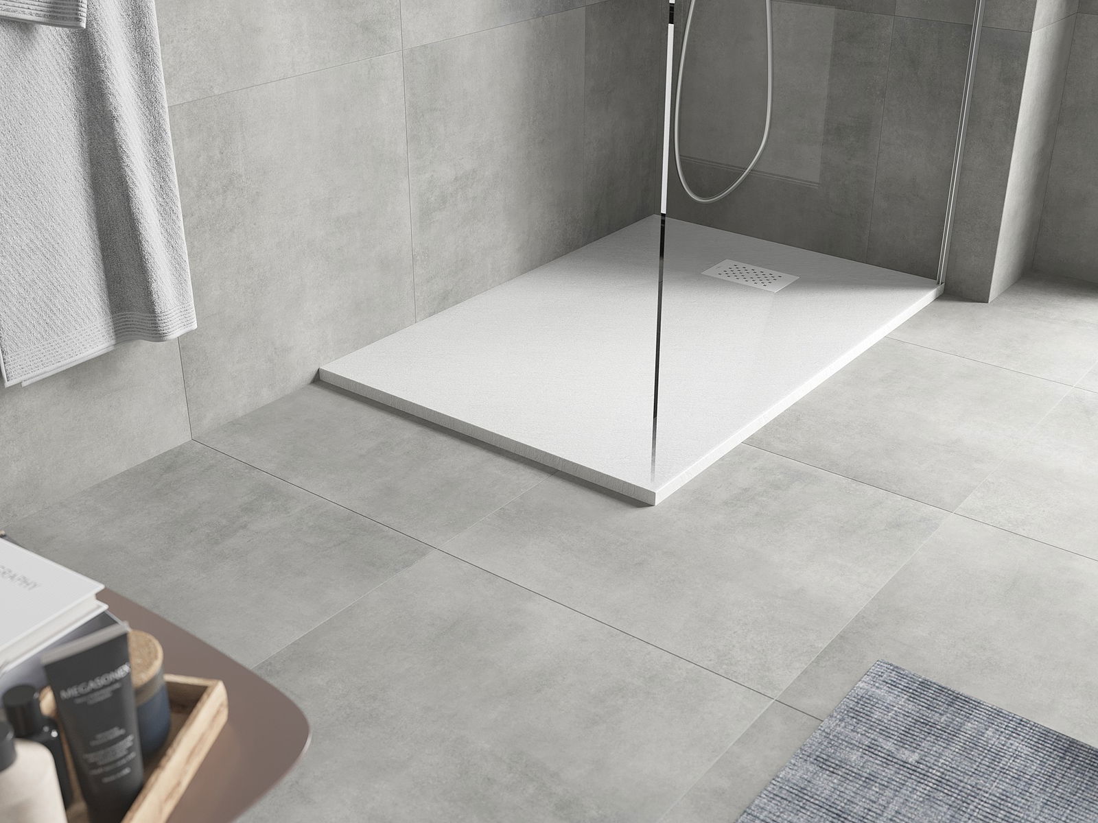 Повърхността на подложката за душ със своята структура наподобява камък. Тя представлява уникално съчетание на естествен вид с модерното оформление на интериора. Добавя характер, подчертава естетиката и елегантността на декора на банята и възхищава със своята форма.