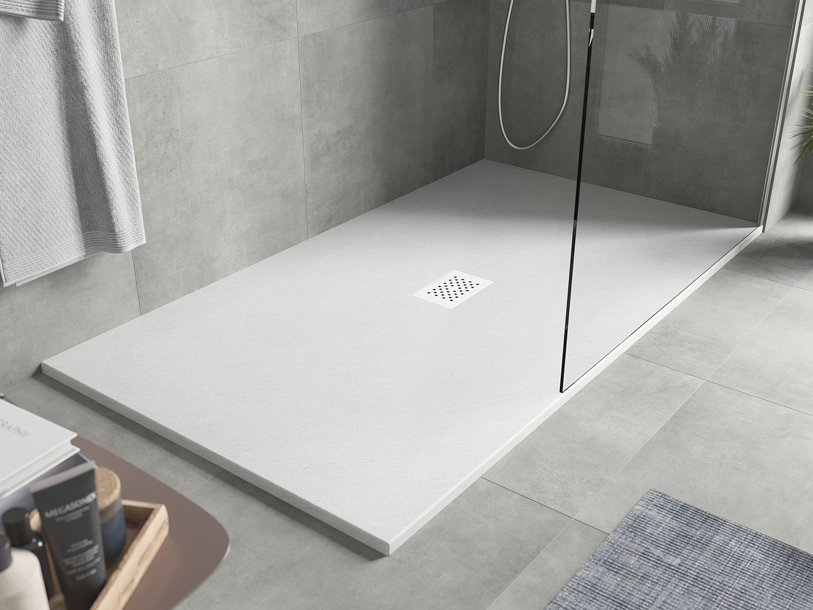 Повърхността на подложката за душ със своята структура наподобява камък. Тя представлява уникално съчетание на естествен вид с модерното оформление на интериора. Добавя характер, подчертава естетиката и елегантността на декора на банята и възхищава със своята форма.