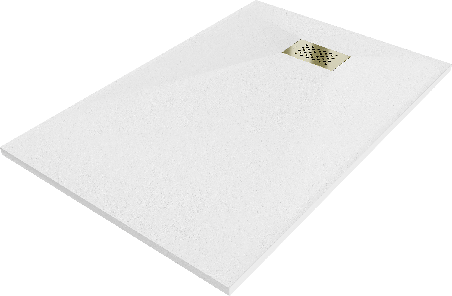 Mexen Hugo правоъгълна душ корито SMC 130 x 70 cm, бял, златна решетка - 42107013-G