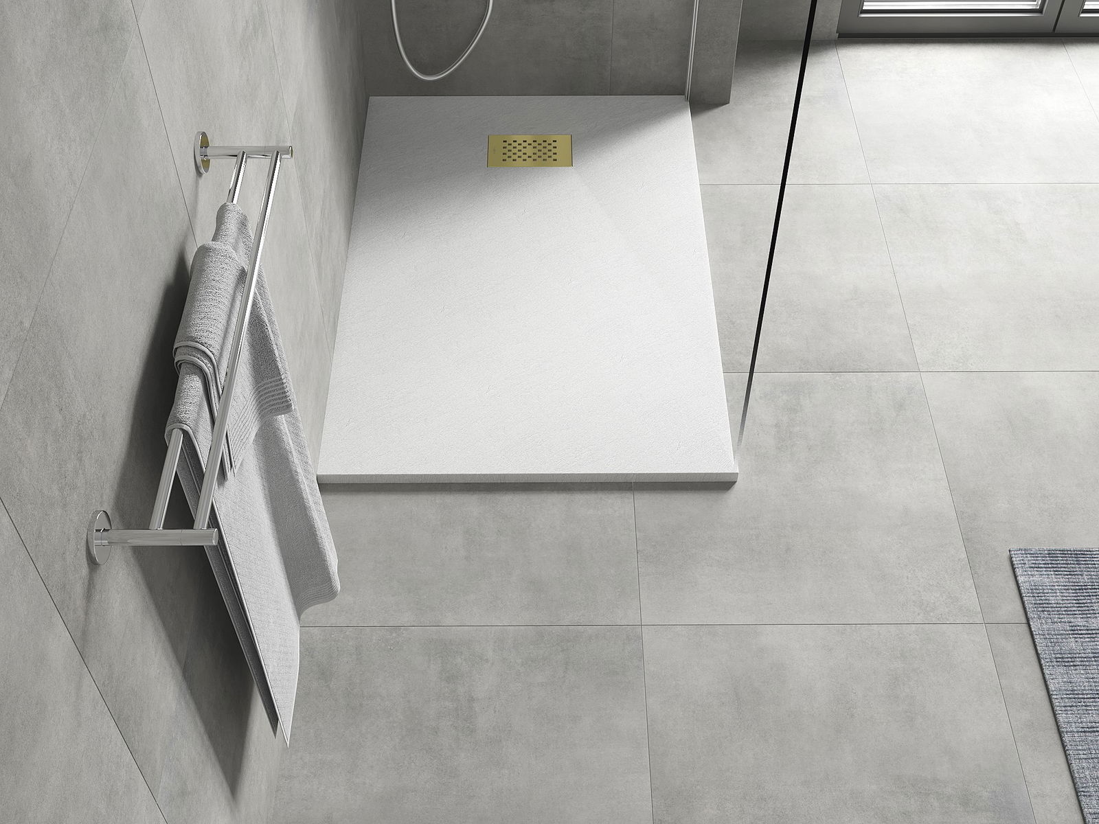 Повърхността на подложката за душ със своята структура наподобява камък. Тя представлява уникално съчетание на естествен вид с модерното оформление на интериора. Добавя характер, подчертава естетиката и елегантността на декора на банята и възхищава със своята форма.