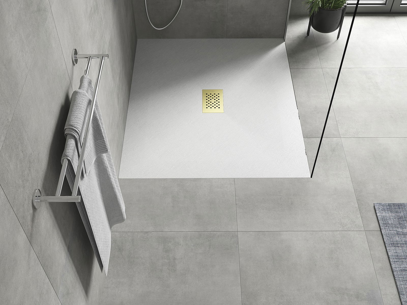 Mexen Hugo правоъгълно корито SMC 110 x 100 см, бяло, декоративна решетка златна - 42101011-G