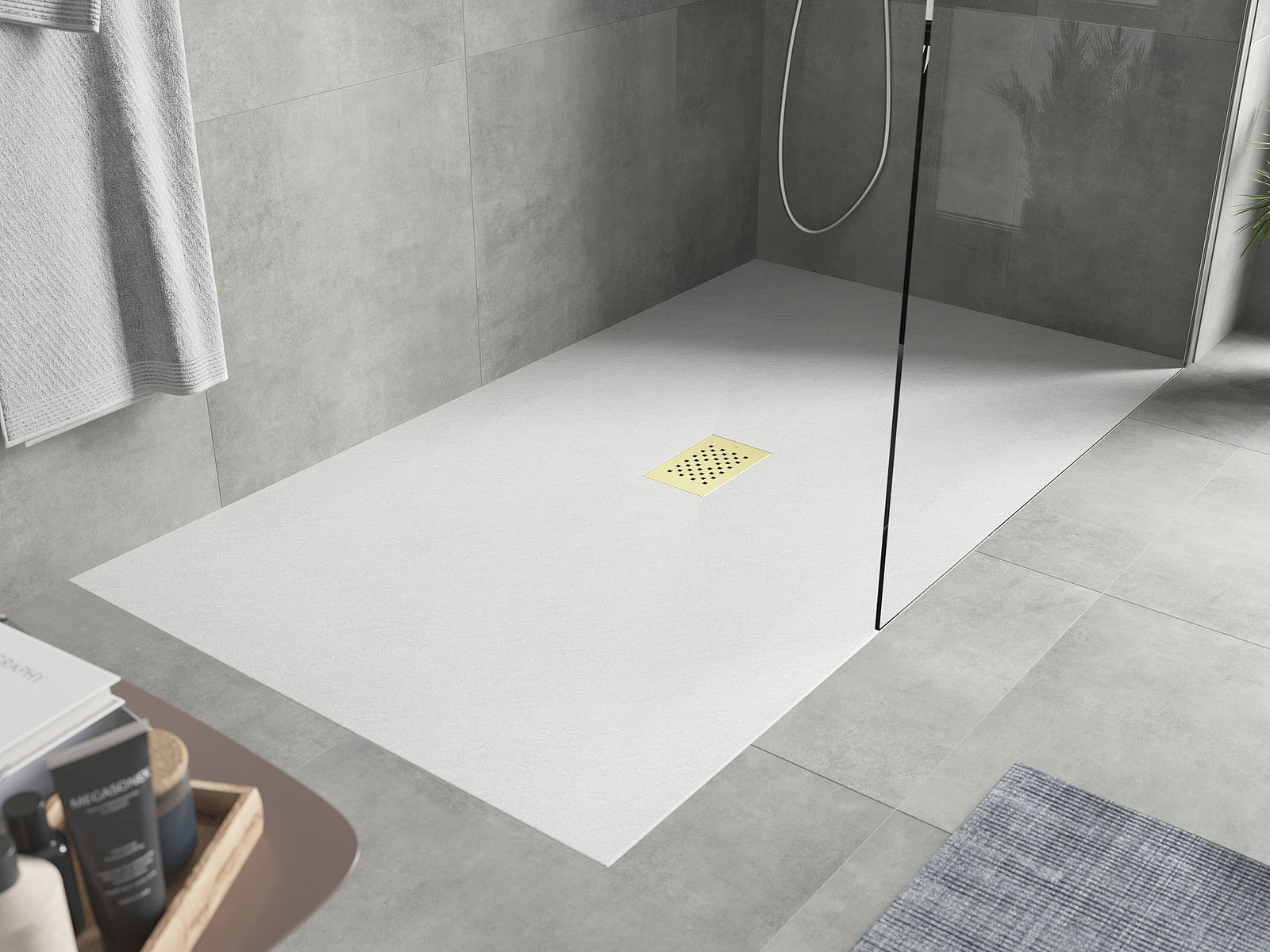 Повърхността на таблата за душ наподобява камък със структурата му. Това е уникална комбинация от естествен външен вид с модерна интериорна подредба. Той добавя характер, подчертава естетиката и елегантността на декора на банята и впечатлява с формата си.
