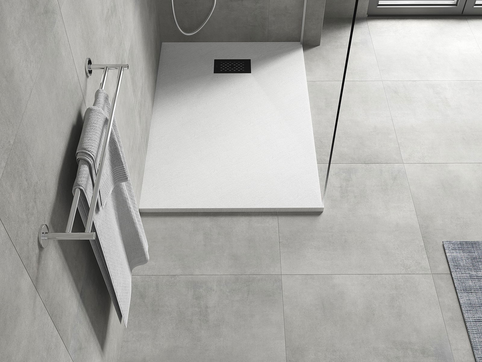 Повърхността на таблата за душ наподобява камък със структурата му. Това е уникална комбинация от естествен външен вид с модерна интериорна подредба. Той добавя характер, подчертава естетиката и елегантността на декора на банята и впечатлява с формата си.