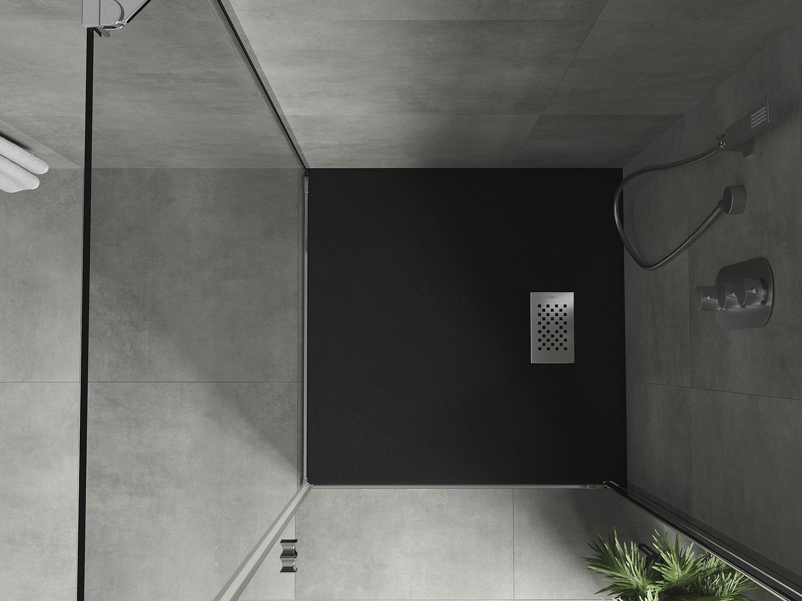 Mexen Hugo квадратен душов поддушник SMC 90 x 90 см, черен, иноксов капак - 42709090-X