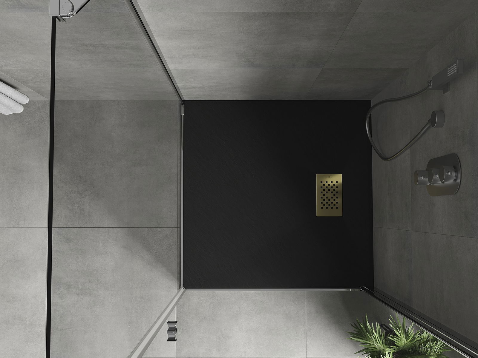 Mexen Hugo квадратен душ корито SMC 80 x 80 см, черен, капак злато - 42708080-G