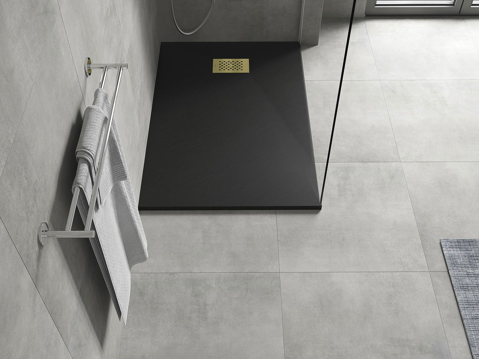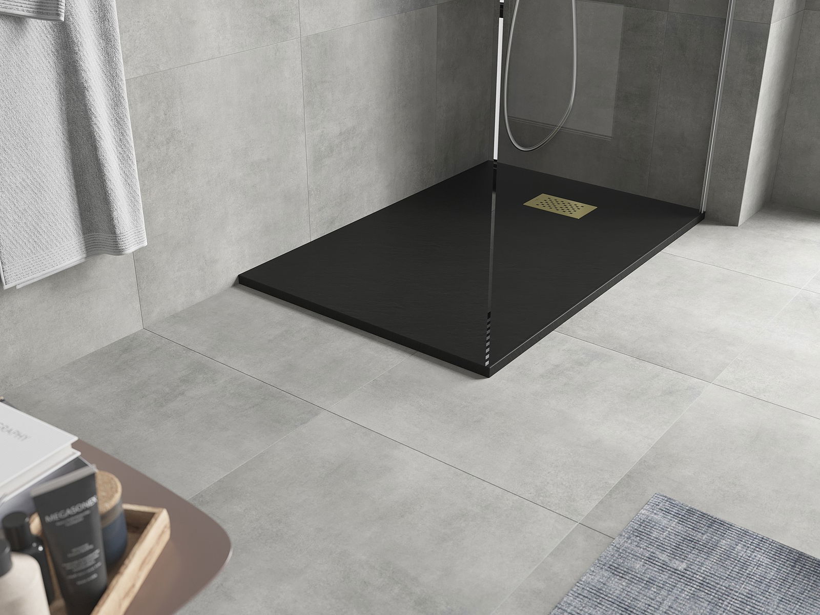 Mexen Hugo правоъгълна душ корито SMC 100 x 80 cm, черно, златен капак - 42708010-G