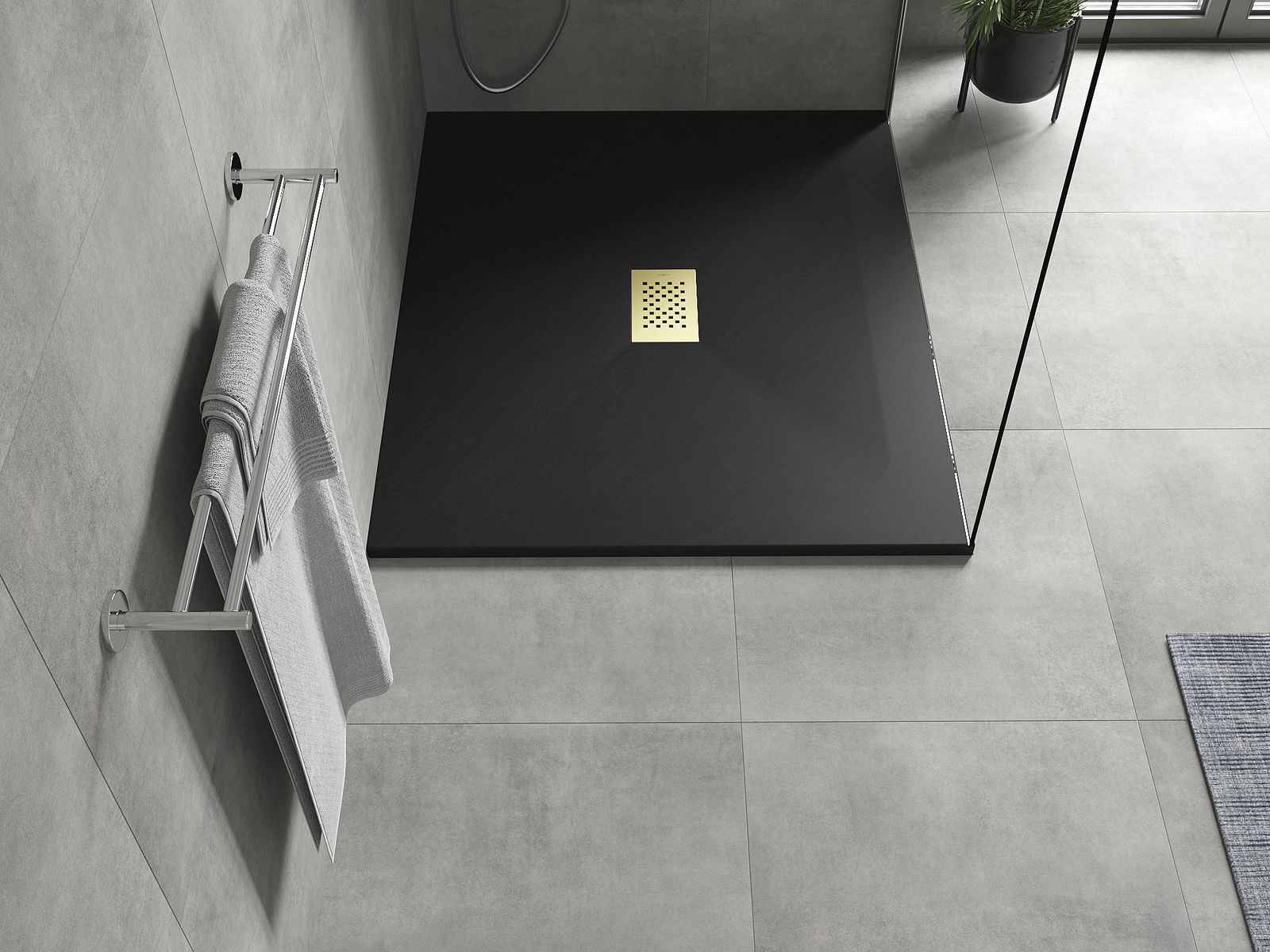 Mexen Hugo правоъгълно поддушово корито SMC 110 x 100 см, черно, златна капачка - 42701011-G