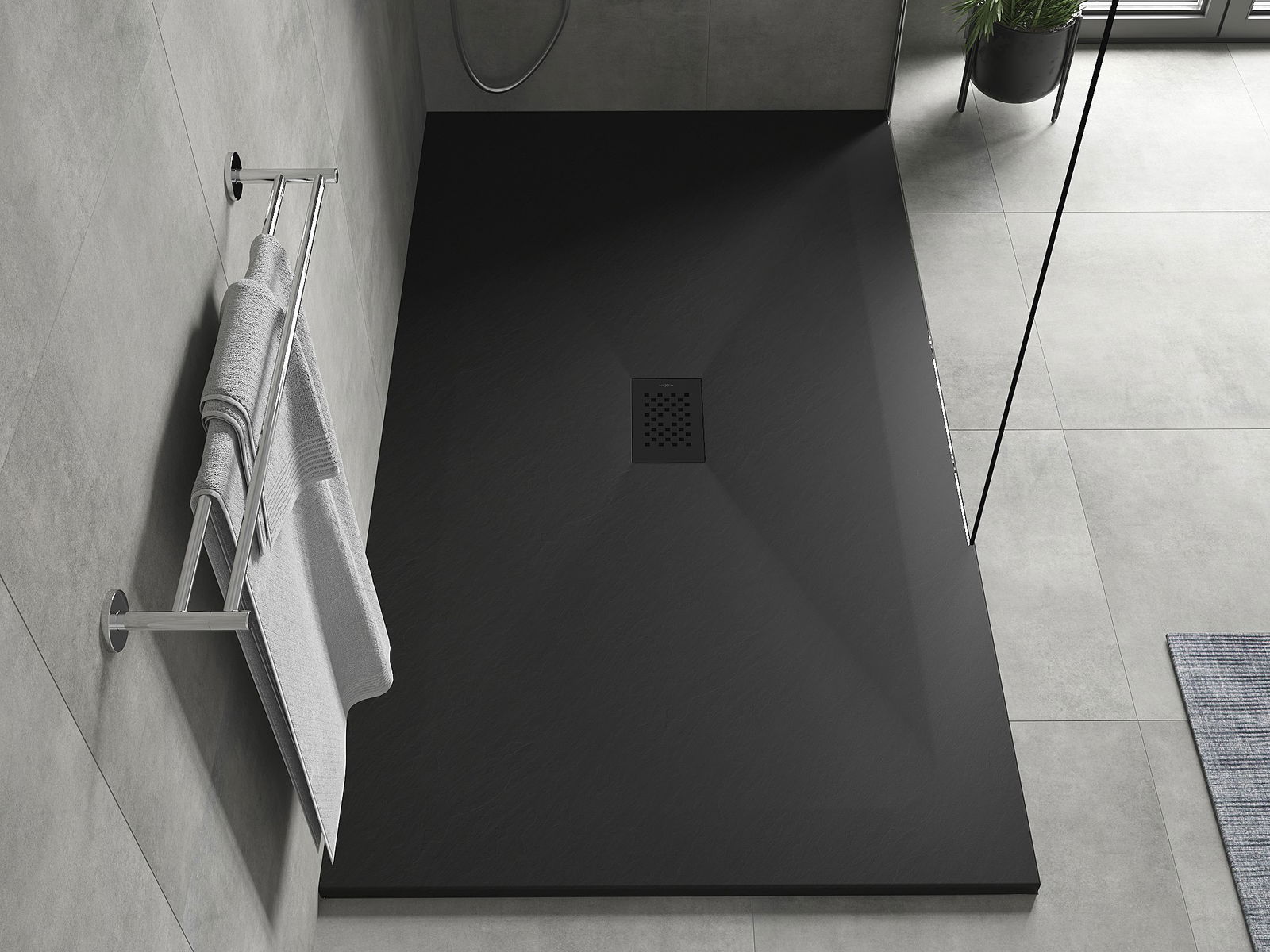 Повърхността на таблата за душ наподобява камък със структурата му. Това е уникална комбинация от естествен външен вид с модерна интериорна подредба. Той добавя характер, подчертава естетиката и елегантността на декора на банята и впечатлява с формата си.