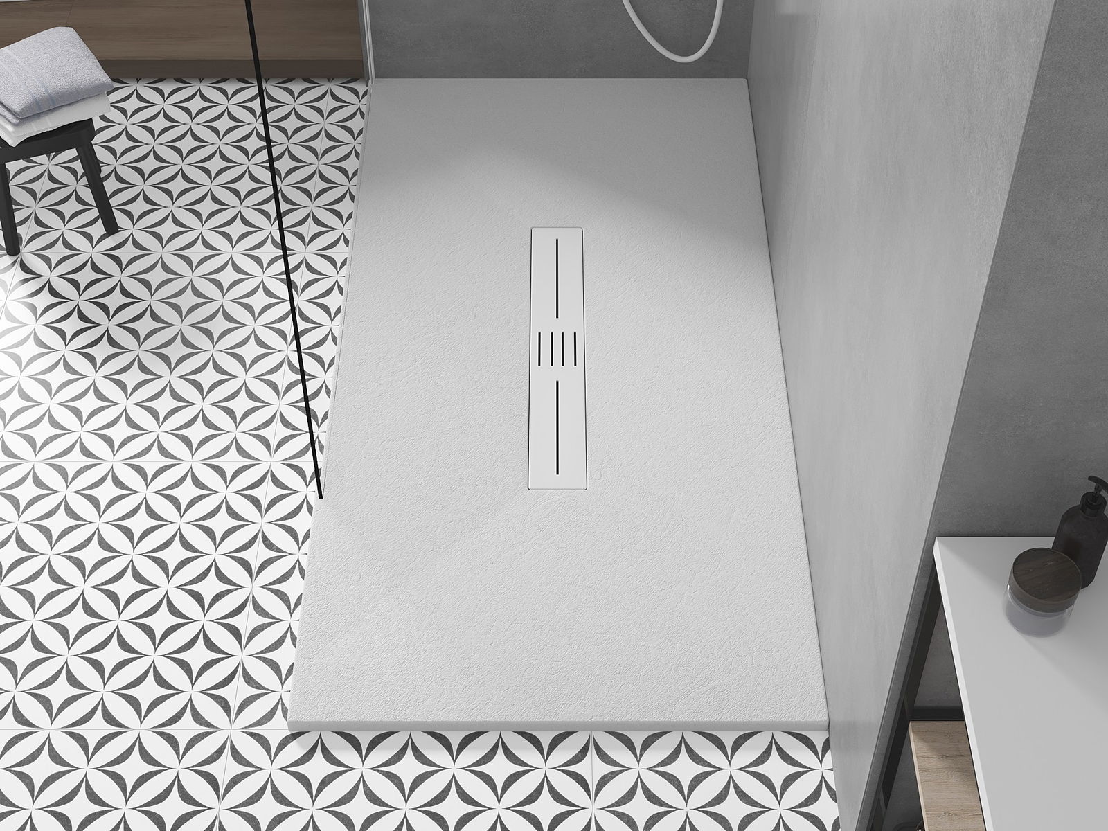Повърхността на подложката за душ със своята структура наподобява камък. Тя представлява уникално съчетание на естествен вид с модерното оформление на интериора. Добавя характер, подчертава естетиката и елегантността на декора на банята и възхищава със своята форма.