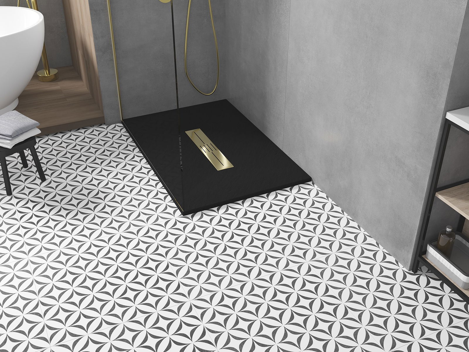 Повърхността на подложката за душ със своята структура наподобява камък. Тя представлява уникално съчетание на естествен вид с модерното оформление на интериора. Добавя характер, подчертава естетиката и елегантността на декора на банята и възхищава със своята форма.