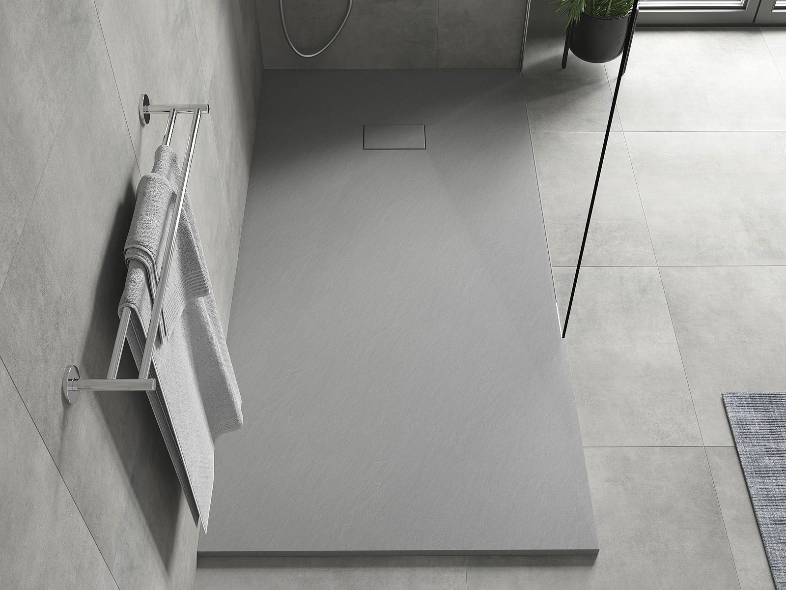Повърхността на подложката за душ със своята структура наподобява камък. Тя представлява уникално съчетание на естествен вид с модерното оформление на интериора. Добавя характер, подчертава естетиката и елегантността на декора на банята и възхищава със своята форма.