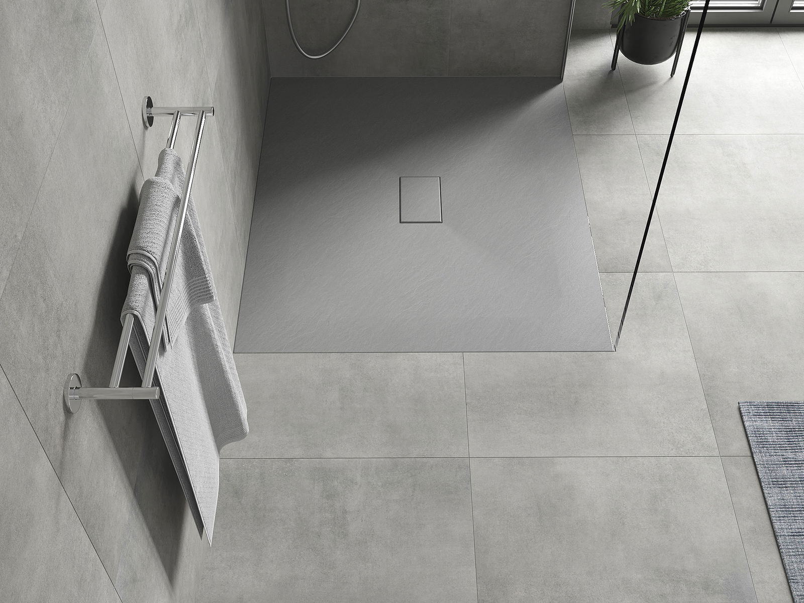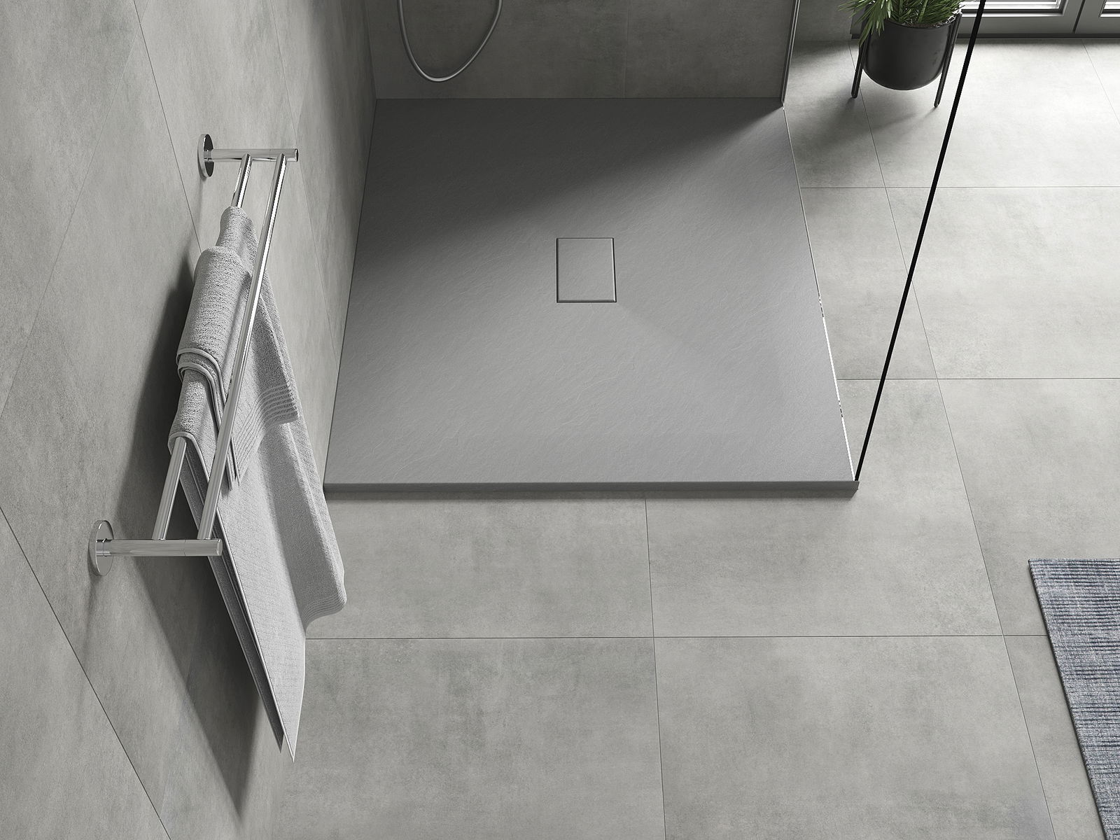 Повърхността на таблата за душ наподобява камък със структурата му. Това е уникална комбинация от естествен външен вид с модерна интериорна подредба. Той добавя характер, подчертава естетиката и елегантността на декора на банята и впечатлява с формата си.