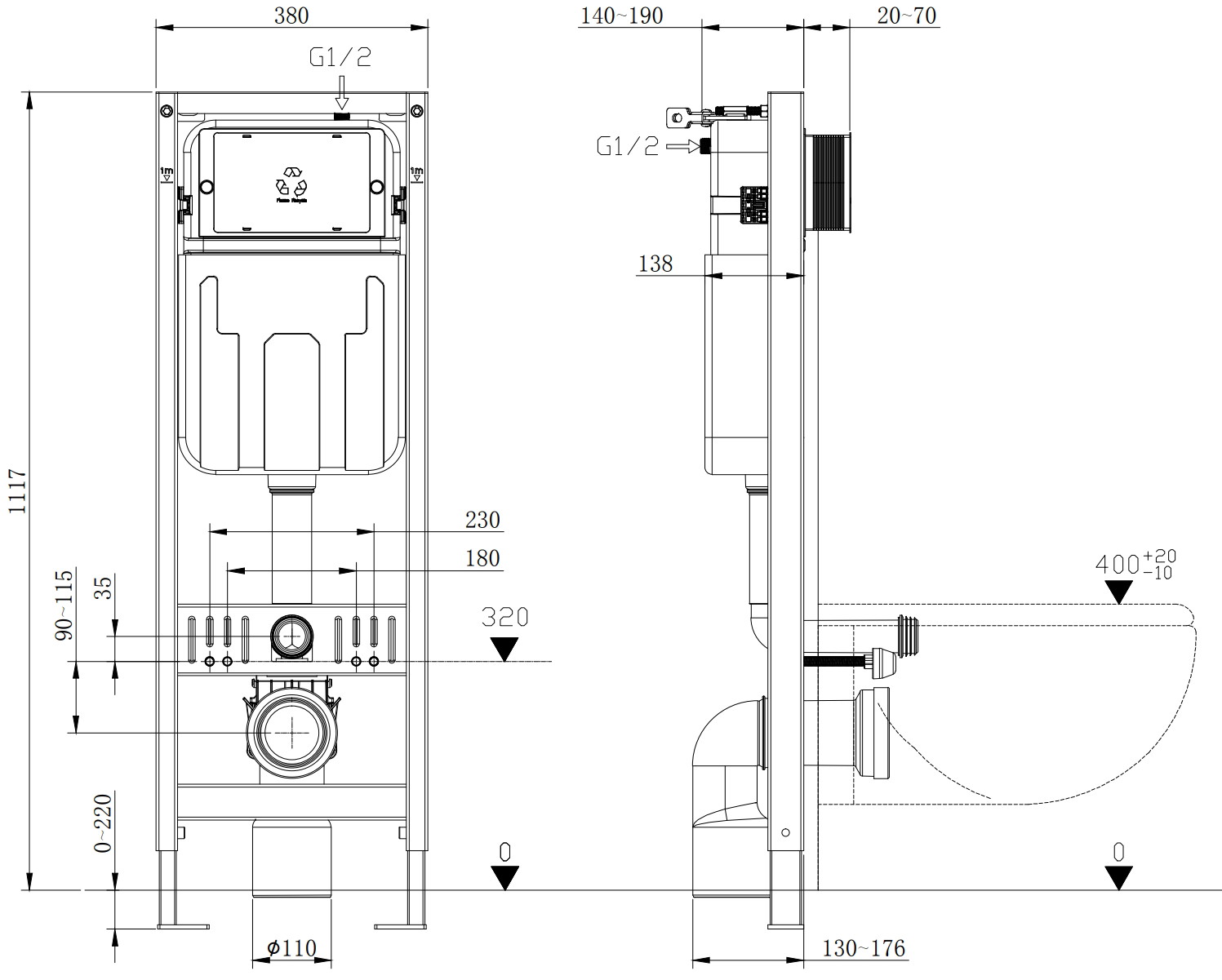 Възможността за регулиране на височината на рамката позволява по-добро адаптиране към различни технически условия в банята. Гъвкавият диапазон на регулиране осигурява удобство при монтаж и постигане на оптимална височина на рамката.