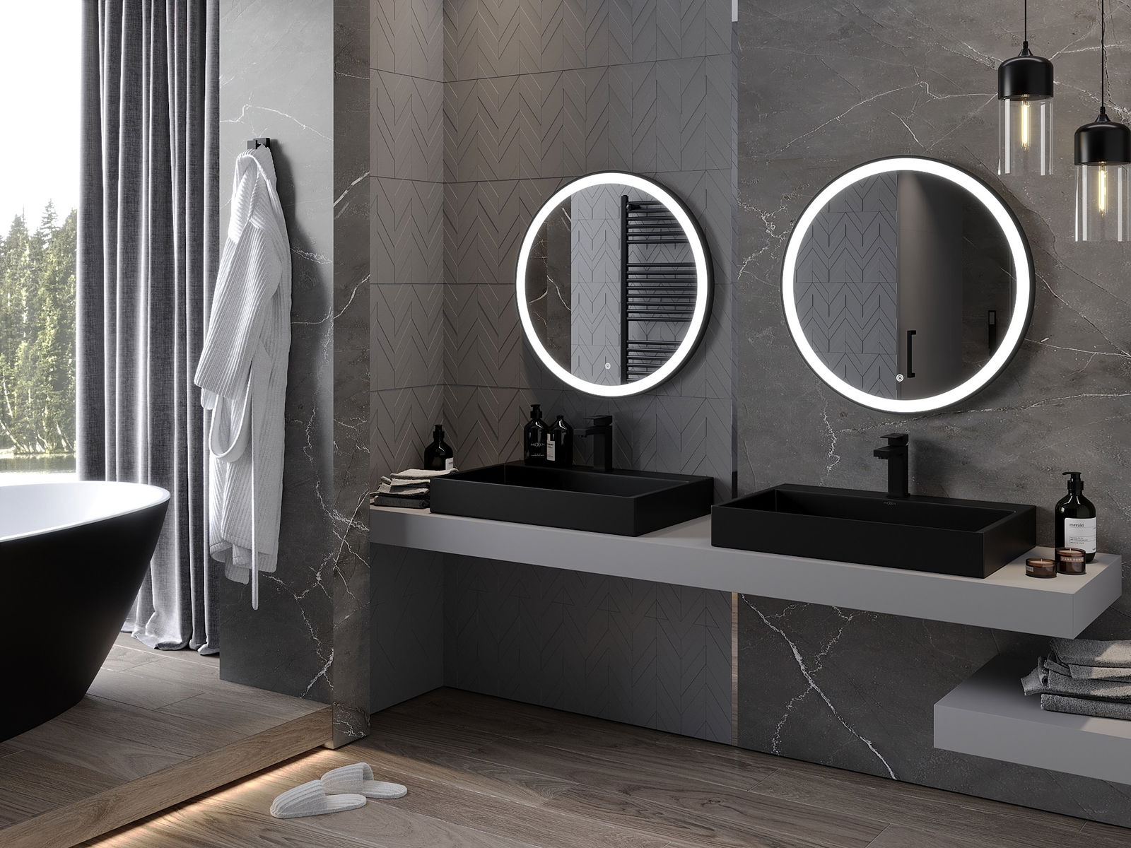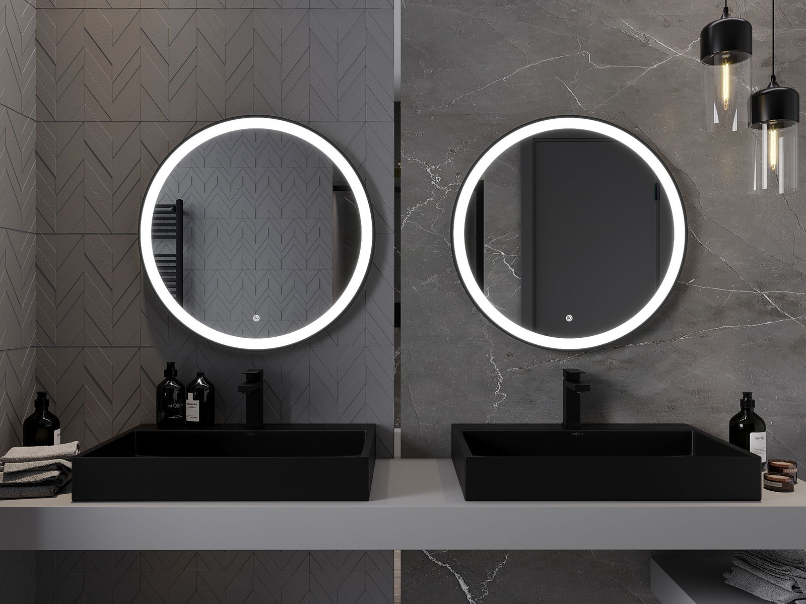 Mexen Esso осветено огледало за баня, кръгло 70 см, LED 6000K, анти-пара, черна рамка - 9825-070-070-611-70