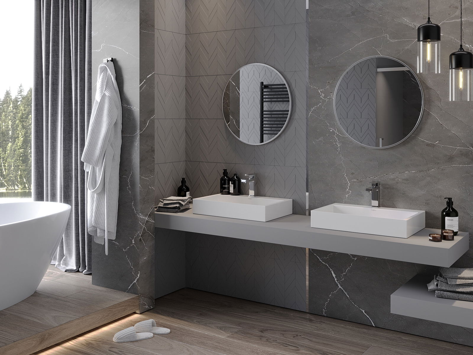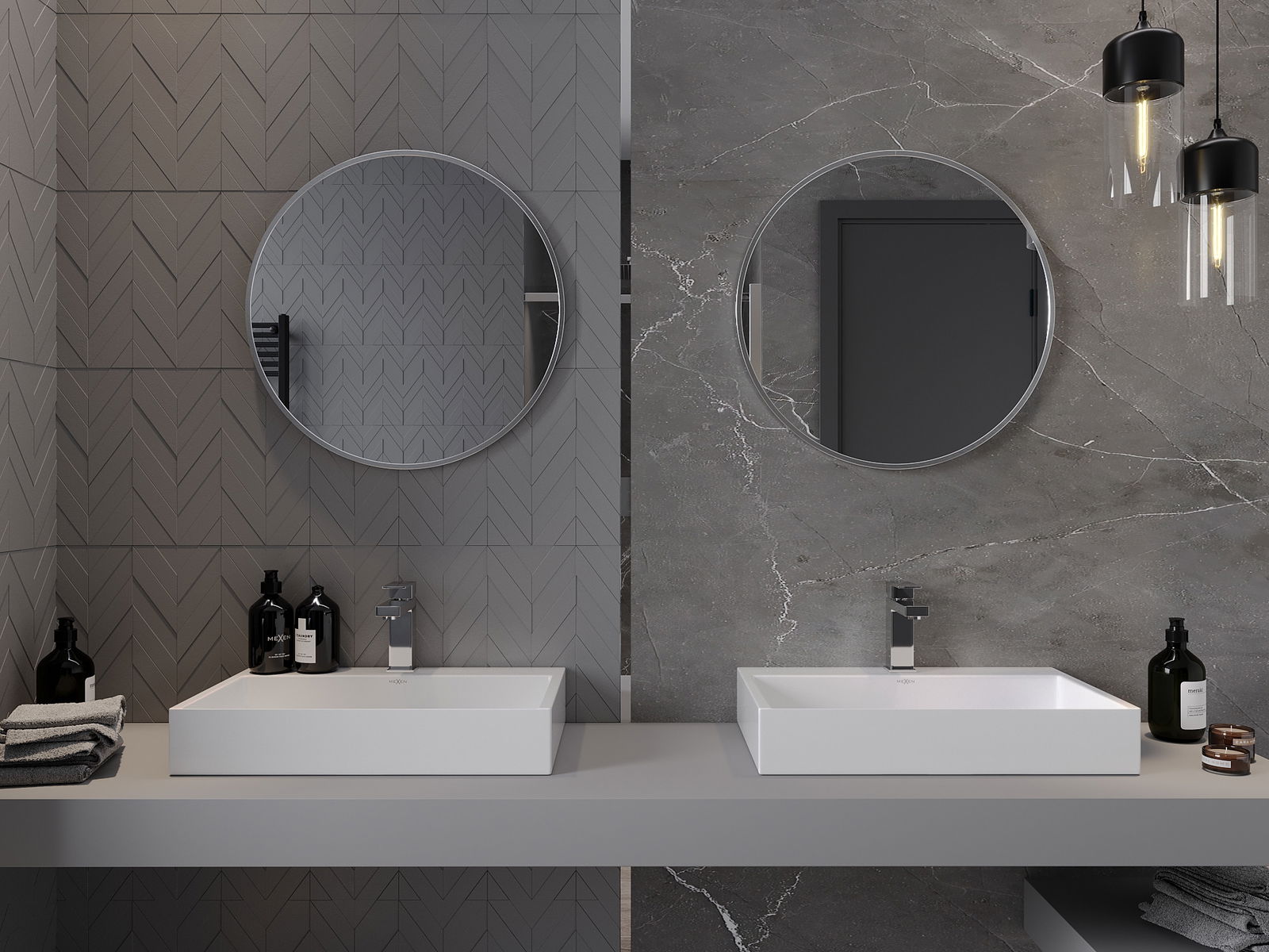 Изработено от суровини с най-високо качество, устойчиво на външни фактори като влага и пара, огледалото е отличен избор за помещения като банята. Използването на висококачествени материали прави огледалото издръжливо и устойчиво на надраскване.