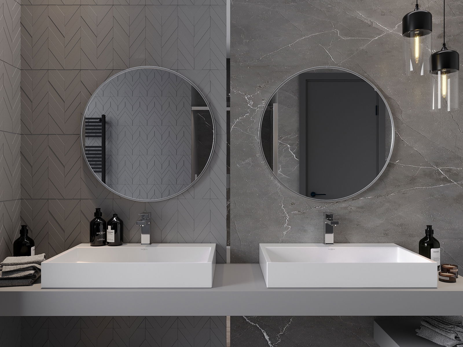 Изработено от суровини с най-високо качество, устойчиво на външни фактори като влага и пара, огледалото е отличен избор за помещения като банята. Използването на висококачествени материали прави огледалото издръжливо и устойчиво на надраскване.